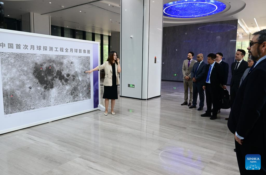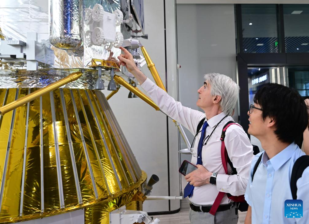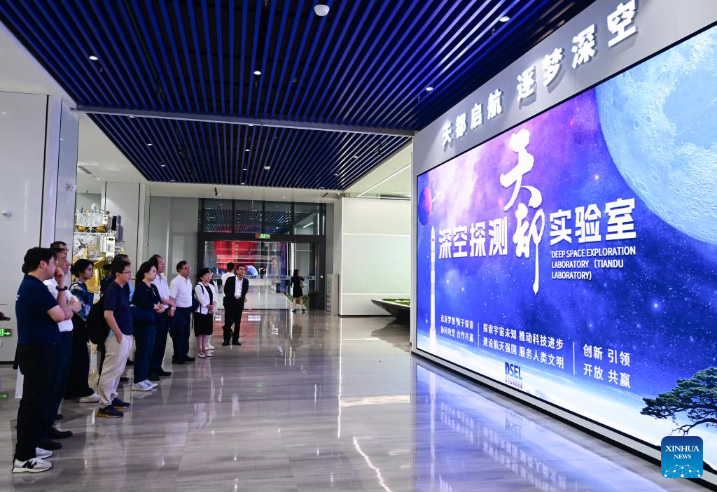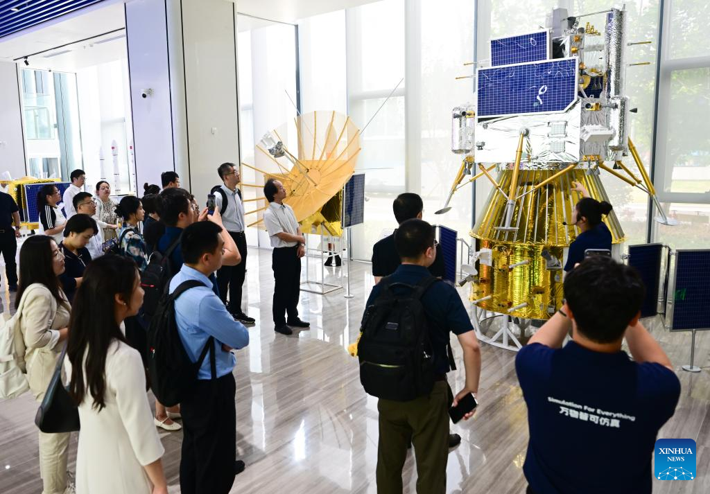 Guests visit the show room of the Deep Space Exploration Laboratory in Hefei, east China's Anhui Province, July 7, 2025. (Xinhua/Zhou Mu)