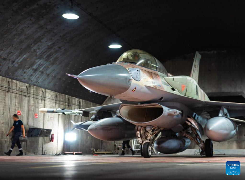 This photo released by Israel Defense Forces on July 7, 2025 shows an Israeli fighter jet getting prepared for airstrikes targeting Yemen at an unidentified location. Israel launched a series of airstrikes on Yemen's Red Sea ports in western Hodeidah Province late Sunday night. (Israel Defense Forces/Handout via Xinhua)