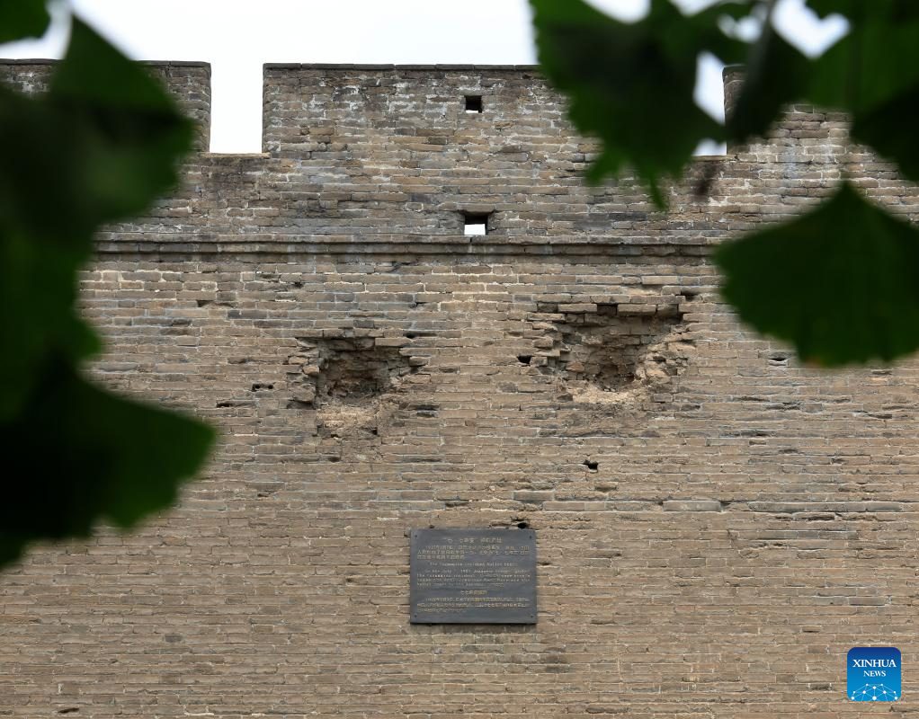 This photo taken on July 4, 2025 shows shell craters on the wall of Wanping Town in Beijing, capital of China. The Museum of the War of Chinese People's Resistance Against Japanese Aggression will reopen on July 8, offering admission fee-free and reservation-free visits to the public.