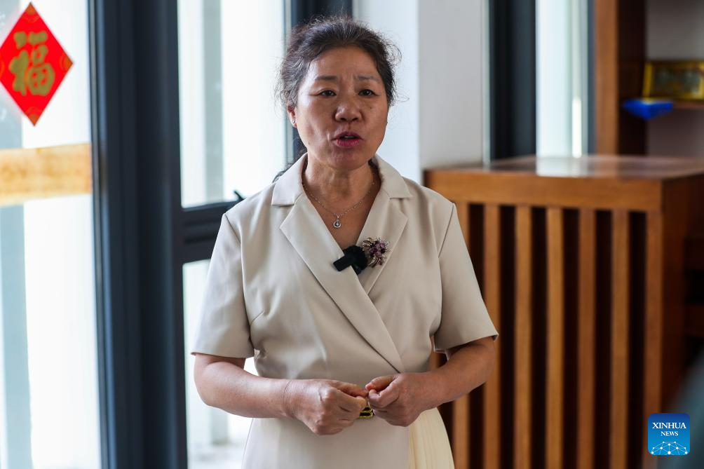 Zhang Xiaozhen, Chinese director of the Confucius Institute at the University of Dar es Salaam, is interviewed in Dar es Salaam, Tanzania, on July 4, 2025. (Xinhua/Emmanuel Herman)