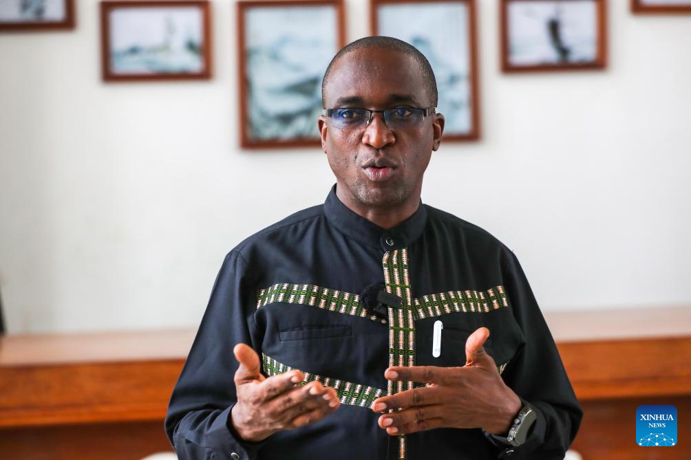 Mussa Hans, Tanzanian director of the Confucius Institute at the University of Dar es Salaam, is interviewed in Dar es Salaam, Tanzania, on July 4, 2025. (Xinhua/Emmanuel Herman)