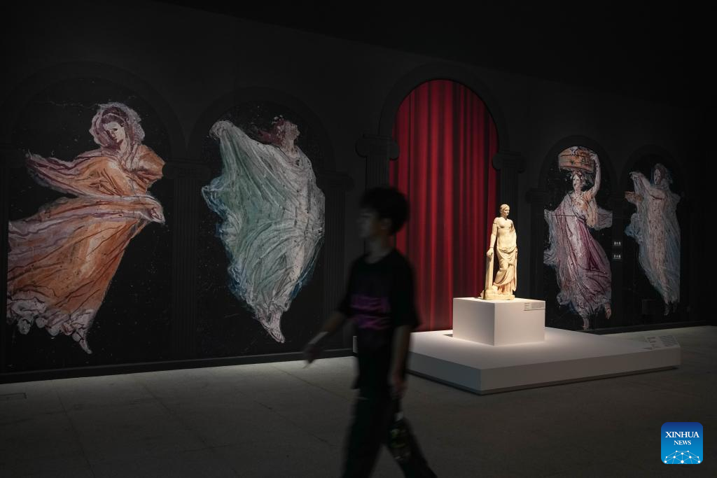 People visit the exhibition "Meet Pompeii: The Eternal City" at the Hunan Museum in Changsha, capital of central China's Hunan Province, July 8, 2025. This exhibition showcasing cultural relics from ancient Pompeii opened here on Tuesday. It features more than 130 artifacts, including frescoes, sculptures, and bronze and gold ware, and will run through November 2 this year. Pompeii, situated between Naples and the Amalfi Coast, is a UNESCO World Heritage Site. The ancient city was buried under volcanic ash and pumice during the catastrophic eruption of Mount Vesuvius in the year 79. (Xinhua/Xue Yuge)