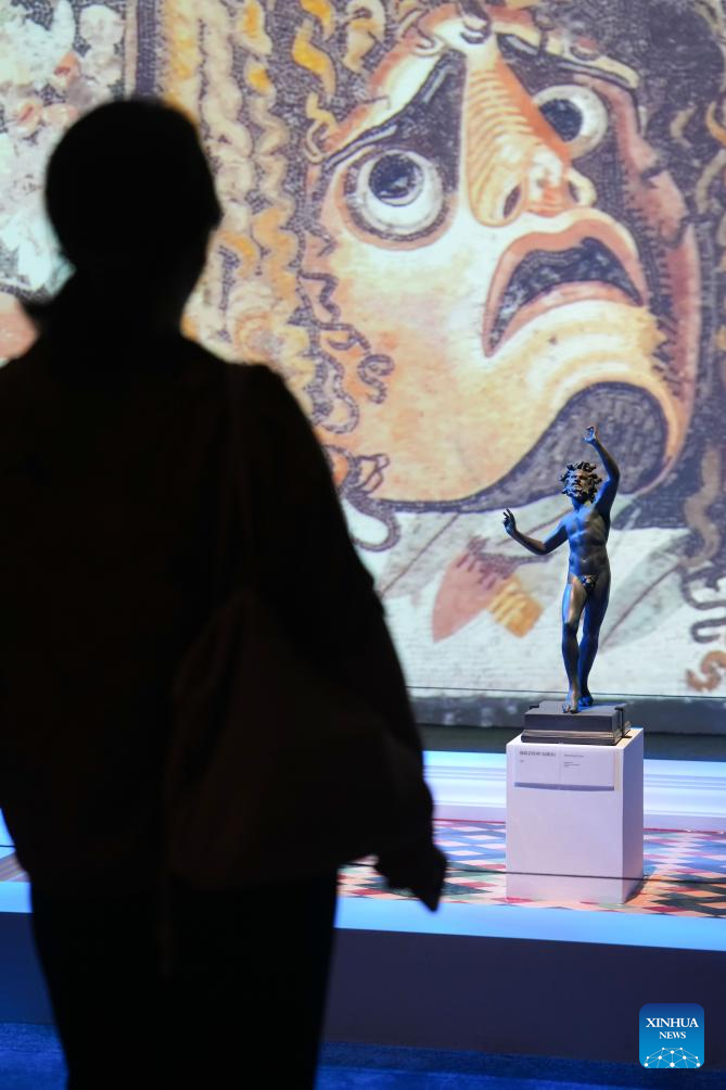 This photo shows an exhibit at the exhibition "Meet Pompeii: The Eternal City" at the Hunan Museum in Changsha, capital of central China's Hunan Province, July 8, 2025. This exhibition showcasing cultural relics from ancient Pompeii opened here on Tuesday.
