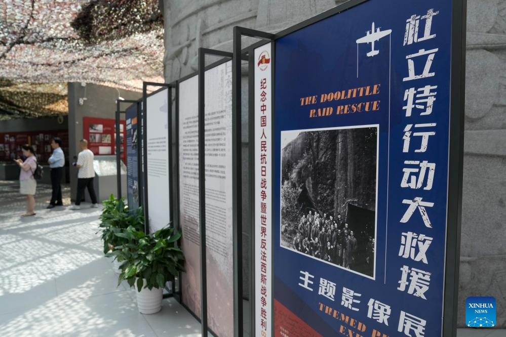 People visit an exhibition themed "Doolittle Raid rescue" at the Nanjing Anti-Japanese Aviation Martyrs Memorial Hall in Nanjing, east China's Jiangsu Province, on July 7, 2025. A series of commemorative events and exhibitions marking the 80th anniversary of the victory in the Chinese People's War of Resistance Against Japanese Aggression and the World Anti-Fascist War were held here on Monday. (Xinhua/Li Bo)