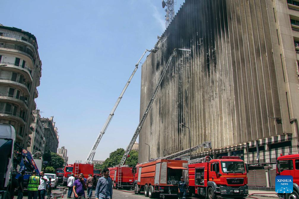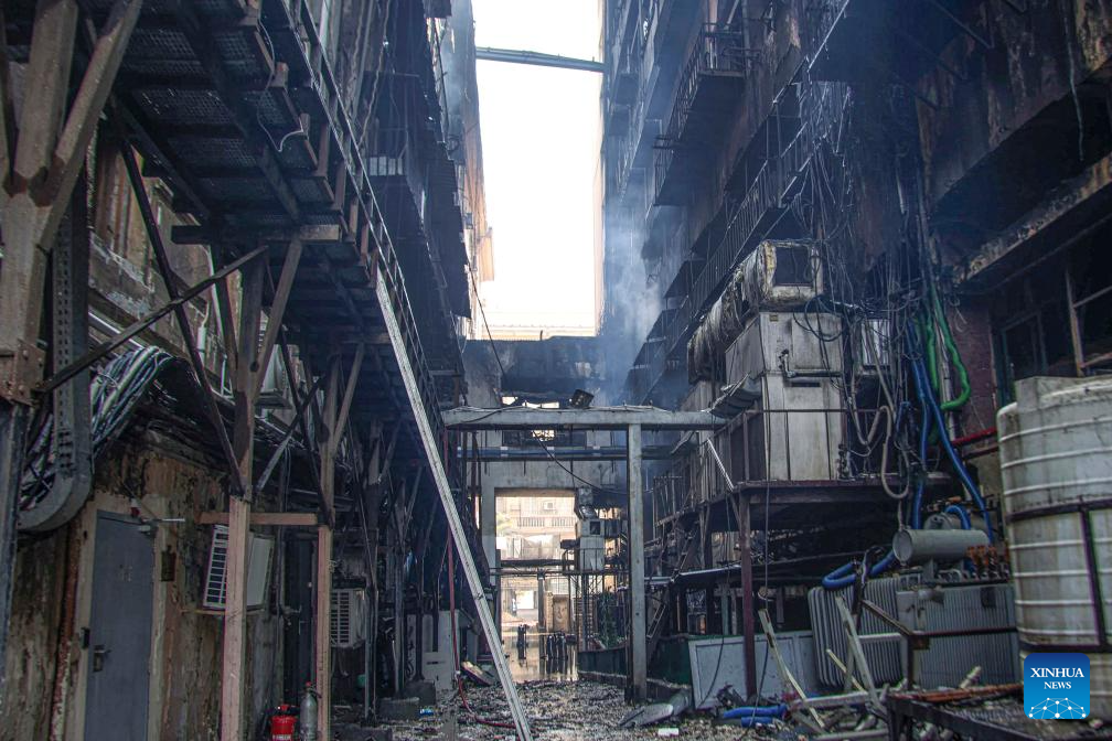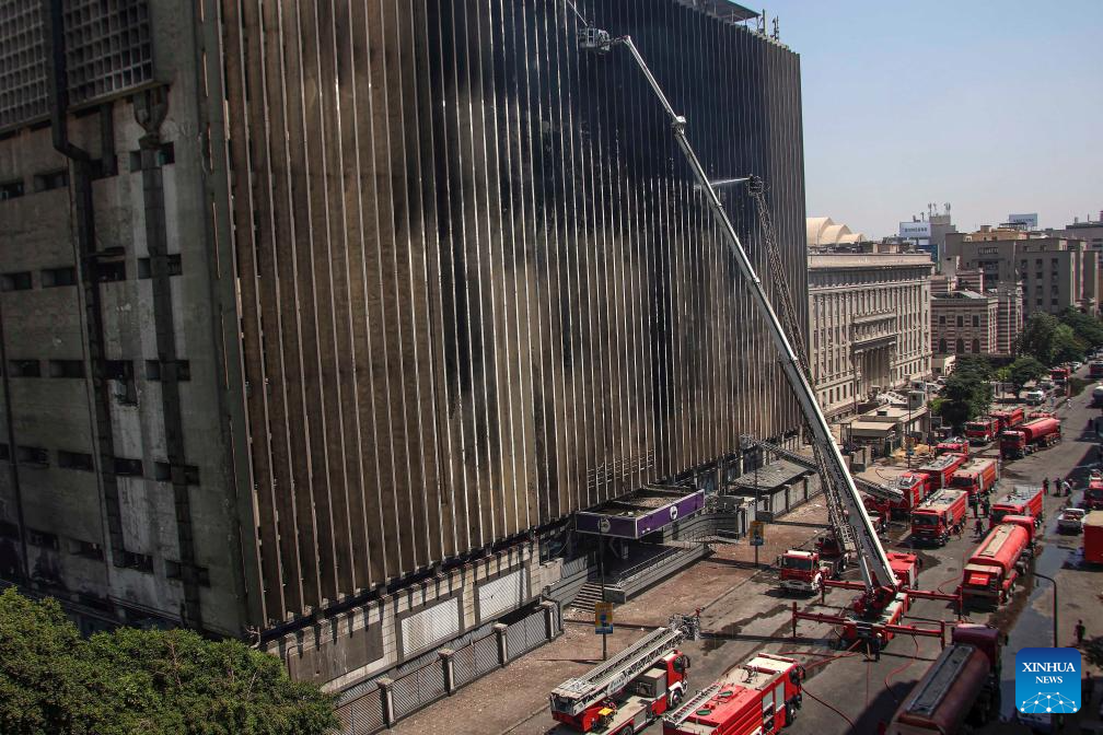 This photo taken on July 8, 2025 shows the central telecommunications building after a fire in Cairo, Egypt. At least four people were killed and 27 others injured in a massive fire that broke out Monday at a central telecommunications building in downtown Cairo, Egypt's Health Ministry said Tuesday. (Xinhua/Ahmed Gomaa)