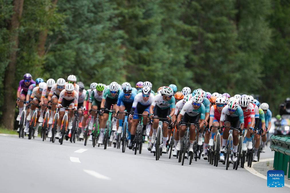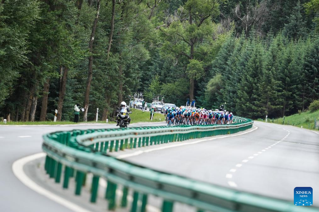 Thursday's fifth stage covers 168.7 kilometers from Qilian to Gangcha, including two steep ascents - one is a 29-km ride from the starting point to the Dadongshu Mountain with a climb from 2,700m to 3,818m and the other is a 20-km ride from the Datong River Bridge to the Hetal Mountain with a climb from 3,400m to 3,869m.