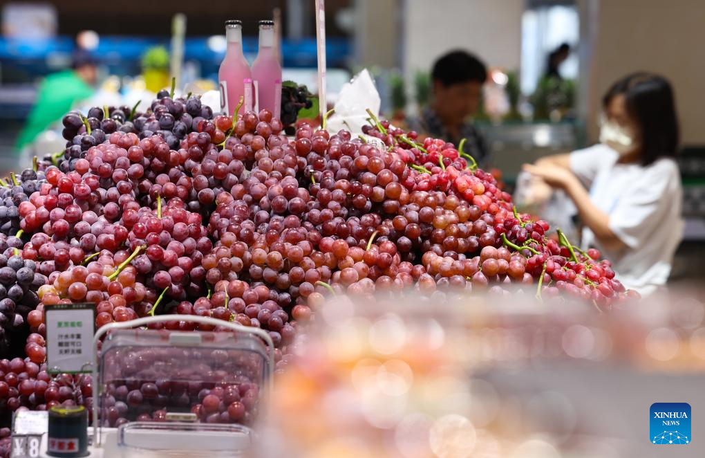 Customers shop at a supermarket in Zhaoxian County of Shijiazhuang, north China's Hebei Province, July 9, 2025. China's consumer price index (CPI), a main gauge of inflation, rose 0.1 percent year on year in June, reversing a 0.1 percent decline registered in the previous month, as the nation's measures aimed at expanding domestic demand and the recovery of industrial consumer goods prices supported price rises.