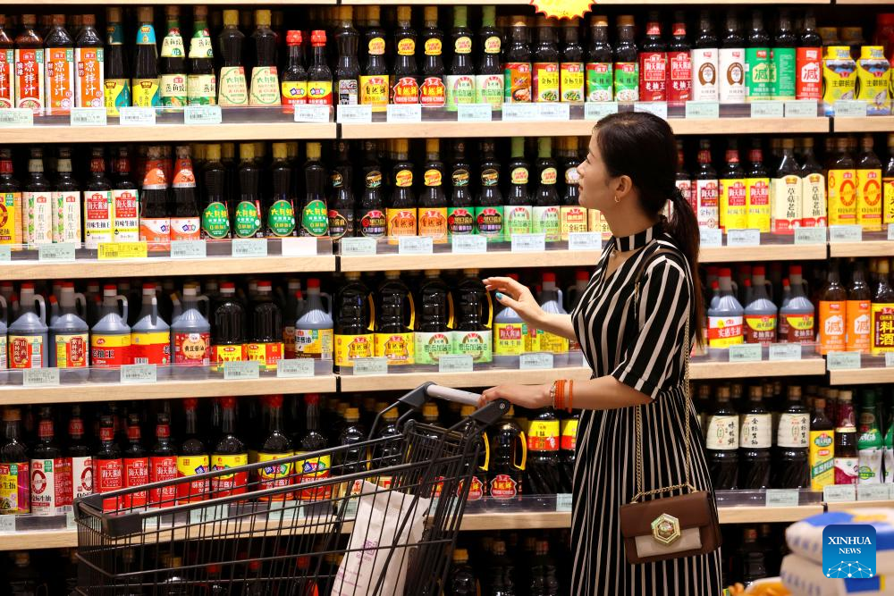 A customer shops at a supermarket in Zaozhuang, east China's Shandong Province, July 9, 2025. China's consumer price index (CPI), a main gauge of inflation, rose 0.1 percent year on year in June, reversing a 0.1 percent decline registered in the previous month, as the nation's measures aimed at expanding domestic demand and the recovery of industrial consumer goods prices supported price rises.