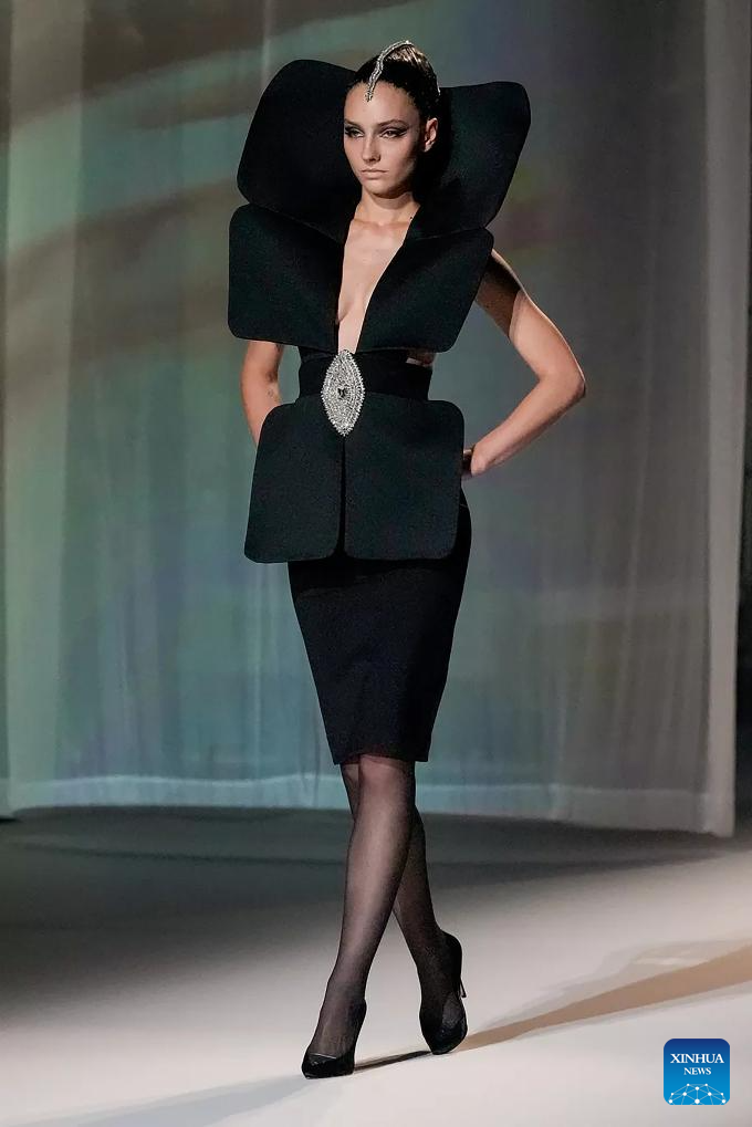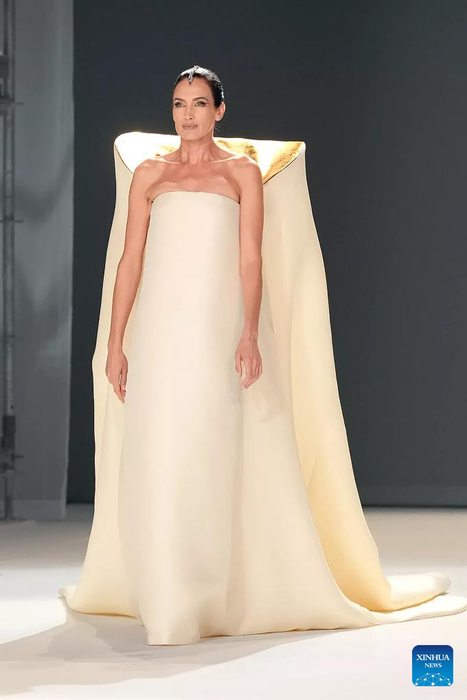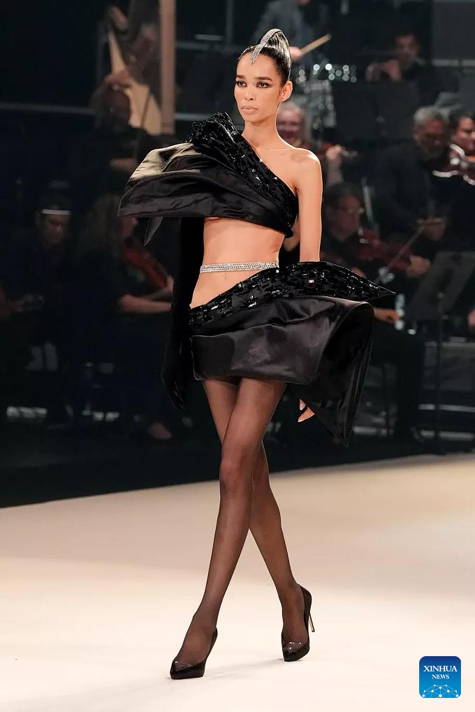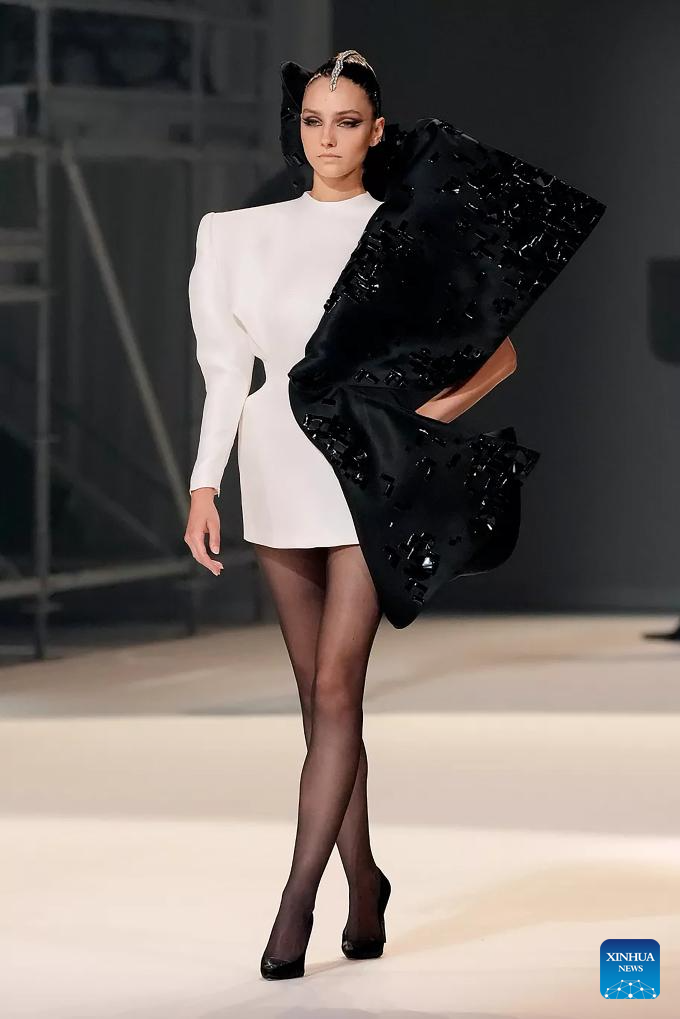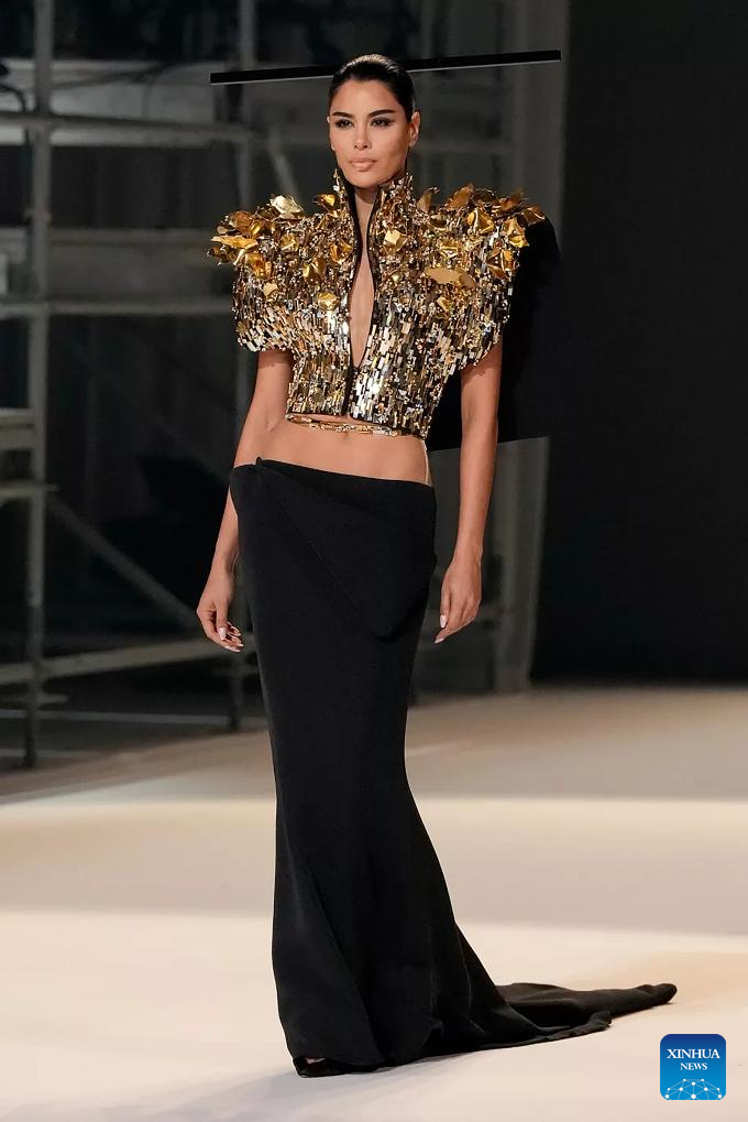 A model presents a creation from the haute couture Fall-Winter 2025/2026 collections by Stephane Rolland during the Paris Haute Couture Week, in Paris, France, on July 8, 2025. (MeetEurope/Handout via Xinhua)