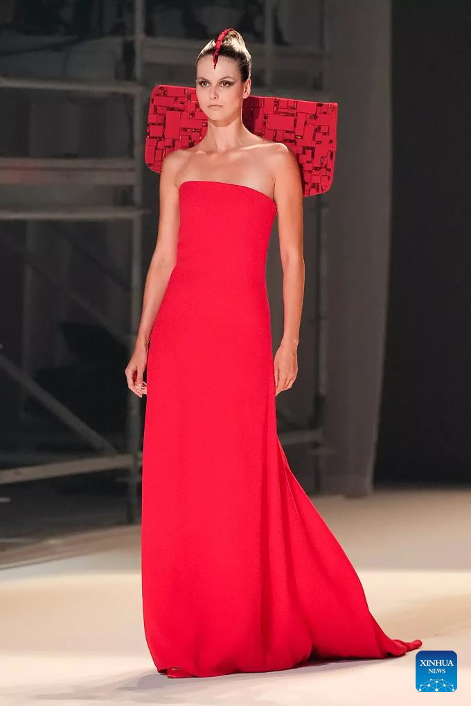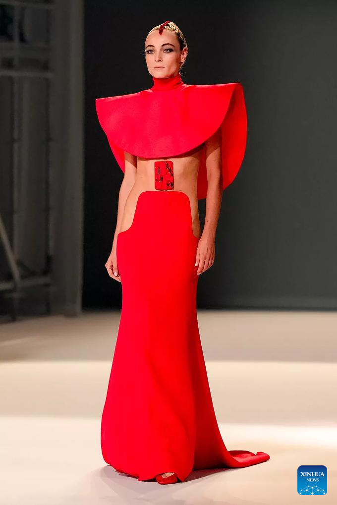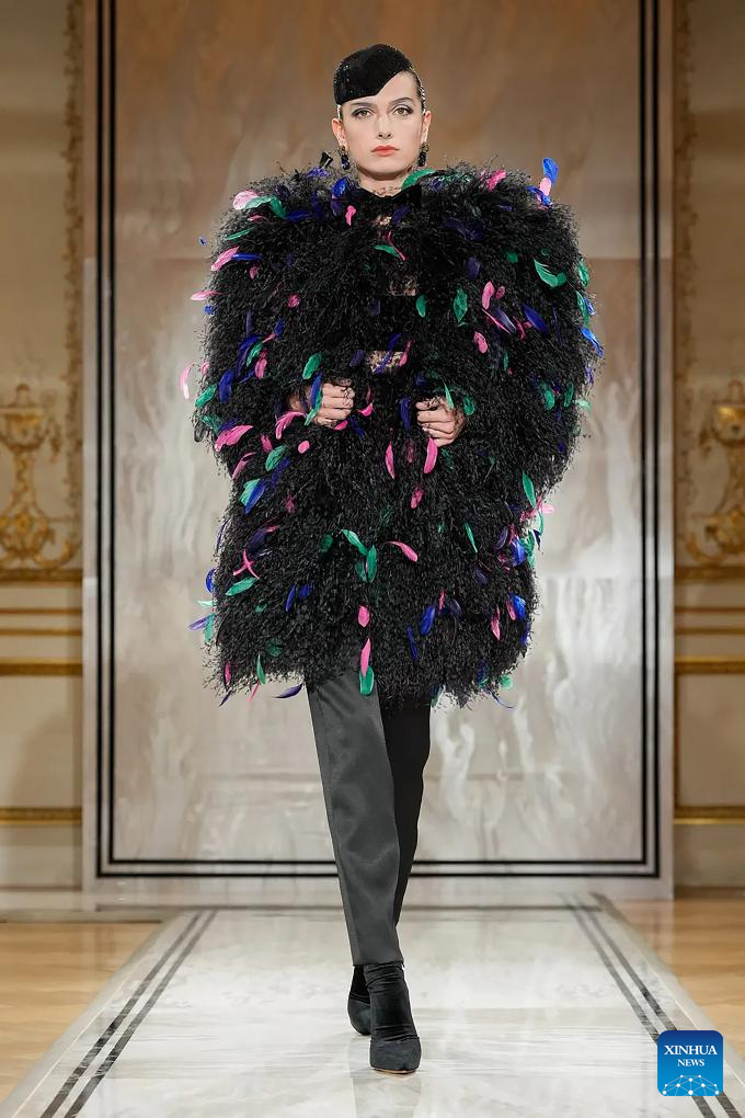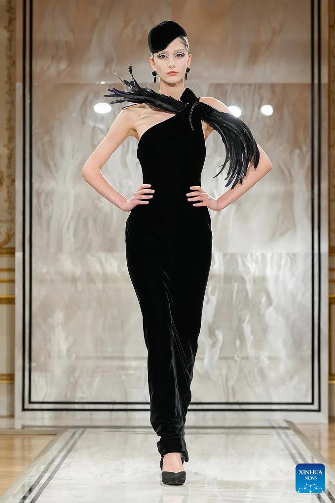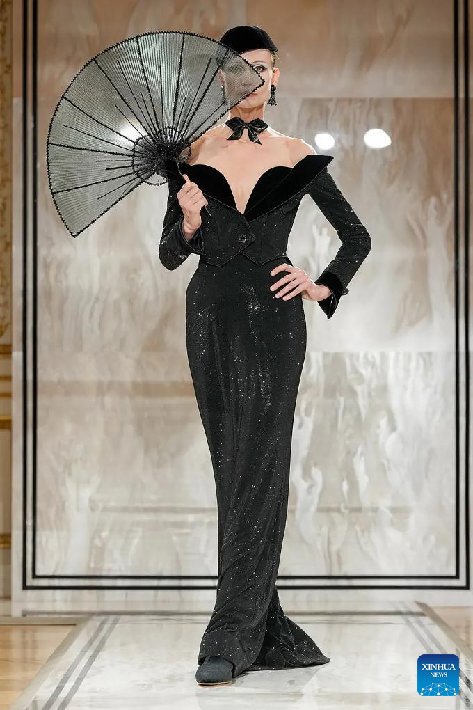 A model presents a creation from the haute couture Fall-Winter 2025/2026 collections by Stephane Rolland during the Paris Haute Couture Week, in Paris, France, on July 8, 2025. (MeetEurope/Handout via Xinhua)
