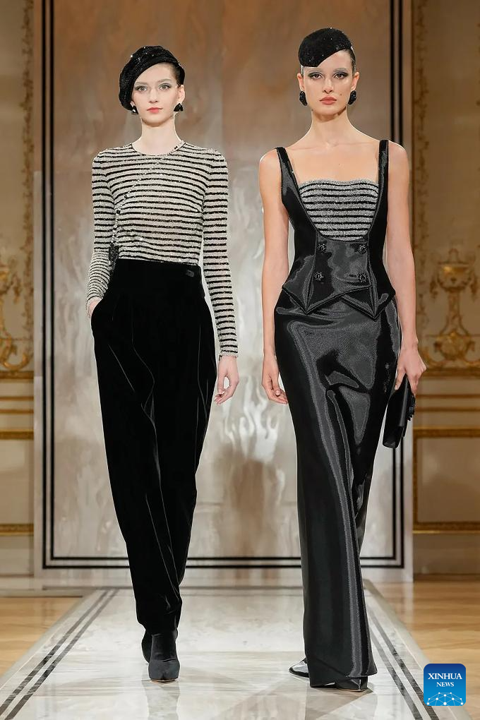 Models present creations from the haute couture Fall-Winter 2025/2026 collections by Giorgio Armani Prive during the Paris Haute Couture Week, in Paris, France, on July 8, 2025. (MeetEurope/Handout via Xinhua)