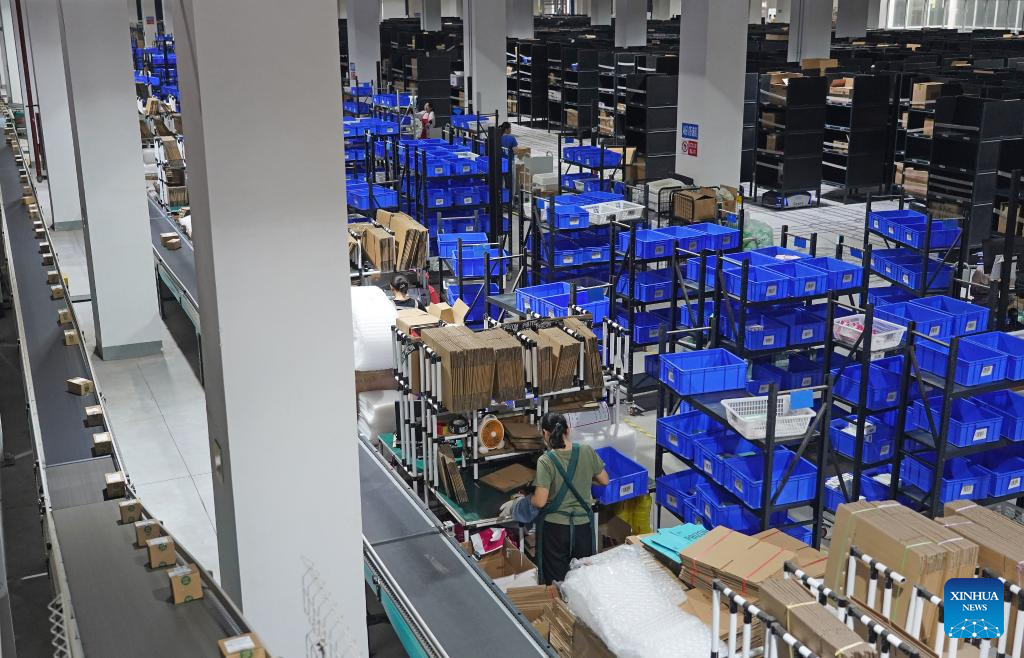 A staff member sorts out cargos at a workshop of a pharmaceutical company in Zhangshu, east China's Jiangxi Province, July 8, 2025. Zhangshu City has been a well-known industrial hub of traditional Chinese medicine (TCM) for centuries. In recent years, the city has leveraged its rich heritage in TCM to actively support enterprises in further research and development based on classic TCM prescriptions.