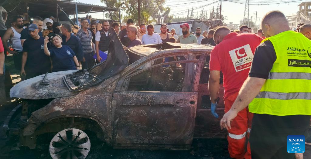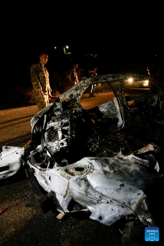 BEIRUT, July 8 (Xinhua) -- Three people were killed and 13 others injured on Tuesday in an Israeli drone strike near the city of Tripoli in northern Lebanon, according to the Lebanese Ministry of Health.
