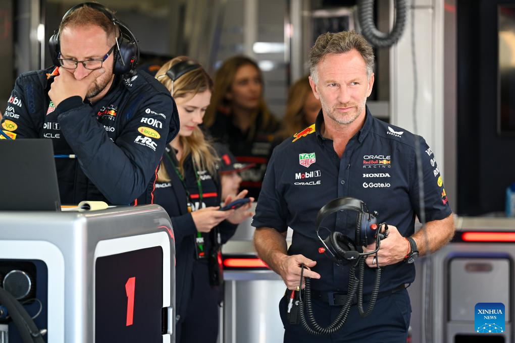 Christian Horner is seen before a free practice of the Formula One British Grand Prix 2025 at the Silverstone Circuit, in Sliverstone, Britain, July 4, 2025. Christian Horner has been dismissed as team principal and CEO of Red Bull Racing, ending a 20-year tenure that transformed the team into one of the most successful outfits in Formula 1 history. (Xinhua/Wu Lu)