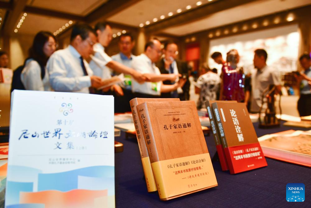 Guests view academic publications at the 11th Nishan Forum on World Civilizations in Qufu, east China's Shandong Province, July 9, 2025. The 11th Nishan Forum on World Civilizations kicked off on Wednesday with the theme of "Beauty in Diversity: Nurturing Understanding Among Civilizations for Global Modernization." The two-day forum takes place in Qufu, the birthplace of the prominent Chinese philosopher Confucius, in east China's Shandong Province. The 11th edition of the forum has attracted over 560 guests from more than 70 countries and regions, participating in various activities, including high-level interviews, keynote speeches, and parallel dialogues. (Xinhua/Zhu Zheng)