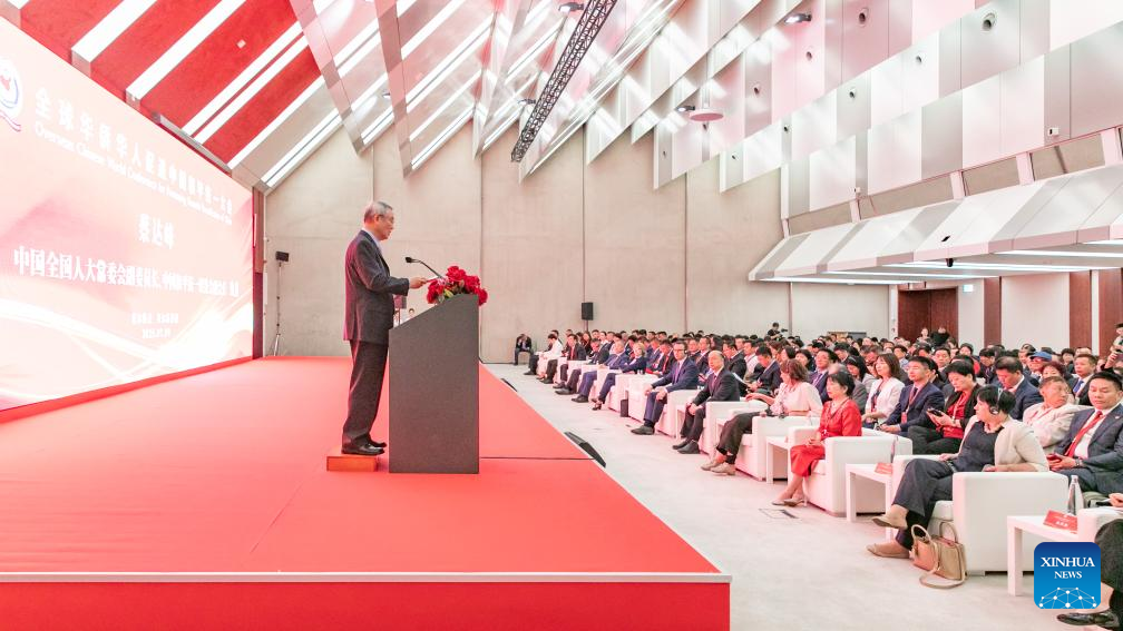 Cai Dafeng, vice chairman of the Standing Committee of the National People's Congress and vice chairman of the China Council for the Promotion of Peaceful National Reunification, delivers a speech at the Overseas Chinese World Conference for Promoting Peaceful Reunification of China in Belgrade, Serbia, July 9, 2025. The conference was held in Belgrade, Serbia, on Wednesday, with the theme of "Hand in hand, work together to promote reunification, and strive to realize the Chinese Dream." (Photo by Wang Wei/Xinhua)