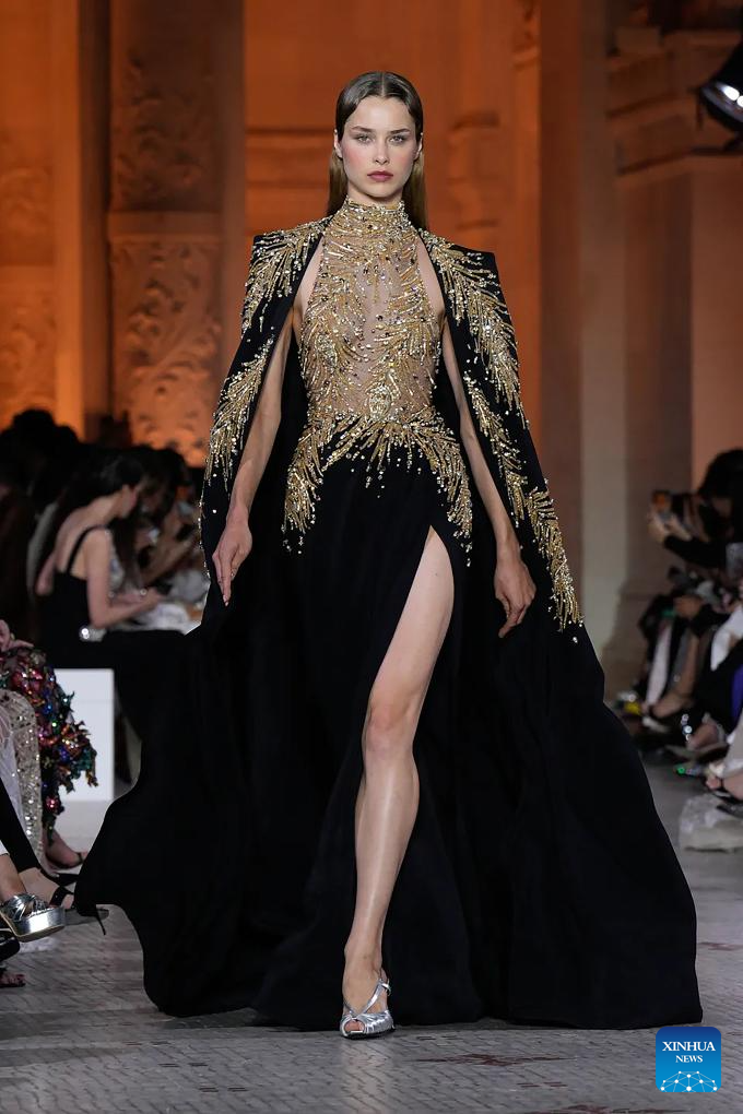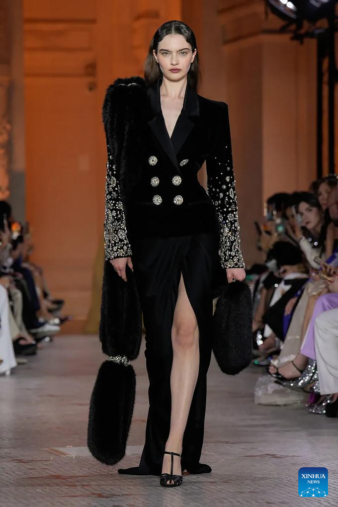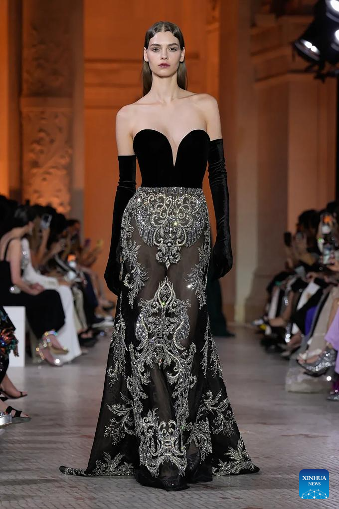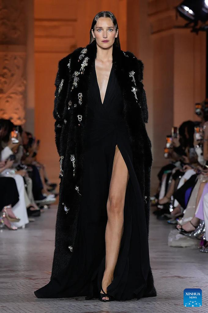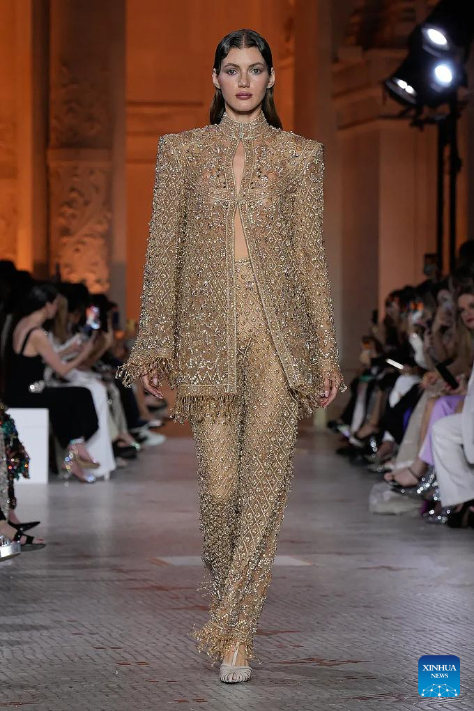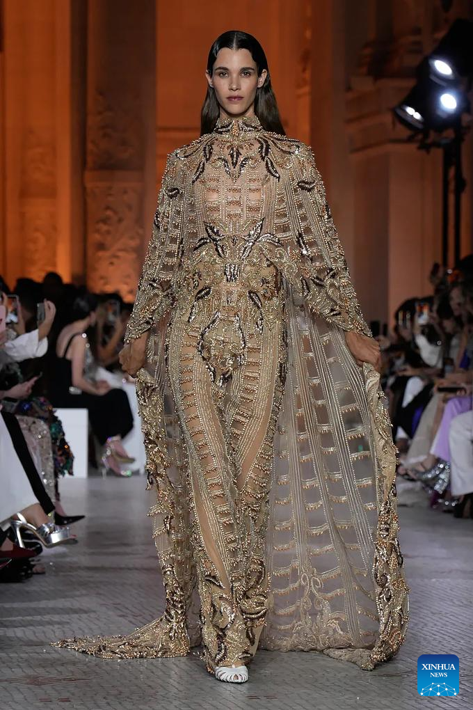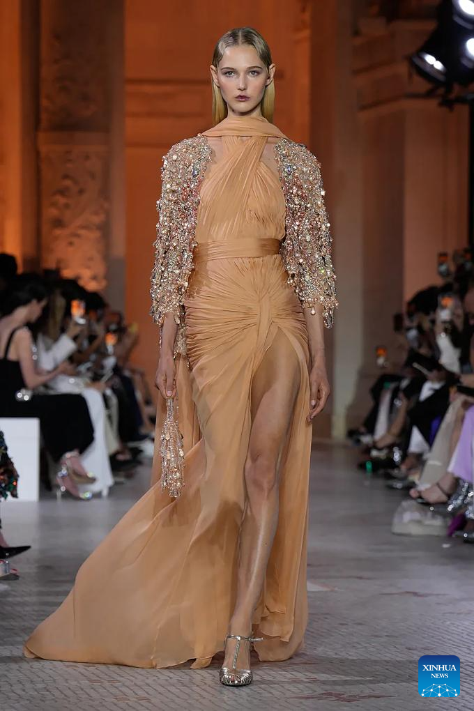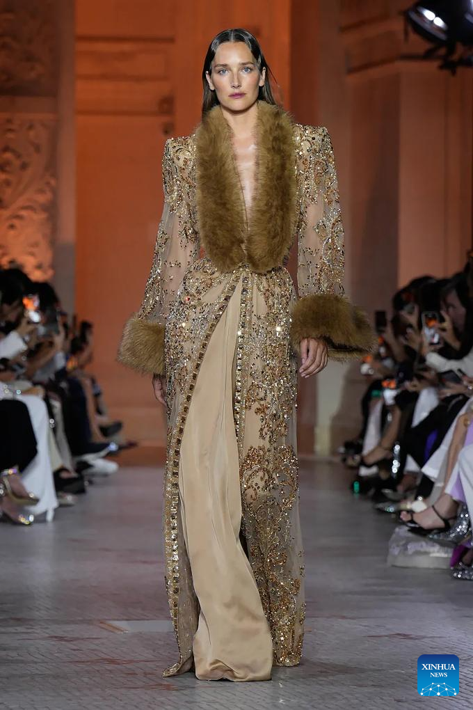 A model presents a creation from the haute couture Fall-Winter 2025/2026 collections by Zuhair Murad during the Paris Haute Couture Week, in Paris, France, on July 9, 2025. (MeetEurope/Handout via Xinhua)