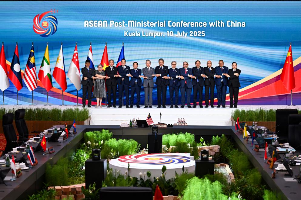 Representatives attending the China-ASEAN Foreign Ministers' Meeting pose for a group photo in Kuala Lumpur, Malaysia, July 10, 2025. Chinese Foreign Minister Wang Yi, also a member of the Political Bureau of the Communist Party of China Central Committee, co-hosted the meeting, which was attended by foreign ministers of ASEAN members, ASEAN observer, as well as the secretary-general of the ASEAN. (Xinhua/Cheng Yiheng)