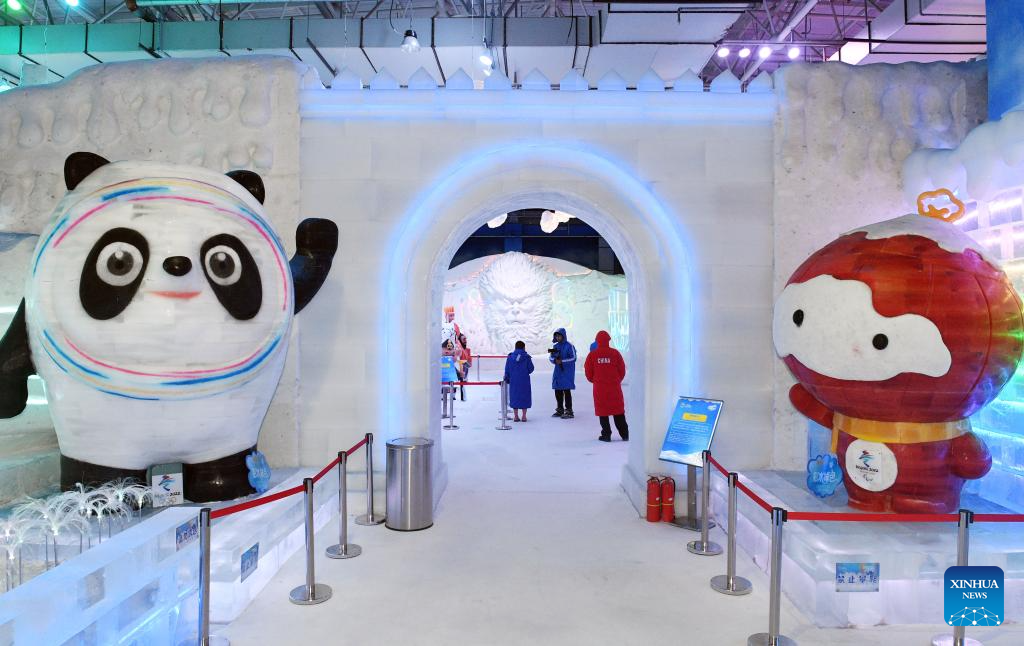 Tourists visit the ice and snow art gallery of the Sun Island scenic spot in Harbin, northeast China's Heilongjiang Province, on July 9, 2025. The newly upgraded ice and snow art gallery of the Sun Island scenic spot opened to public recently, enabling visitors to enjoy ice and snow in summer. (Photo by Liu Yang/Xinhua)
