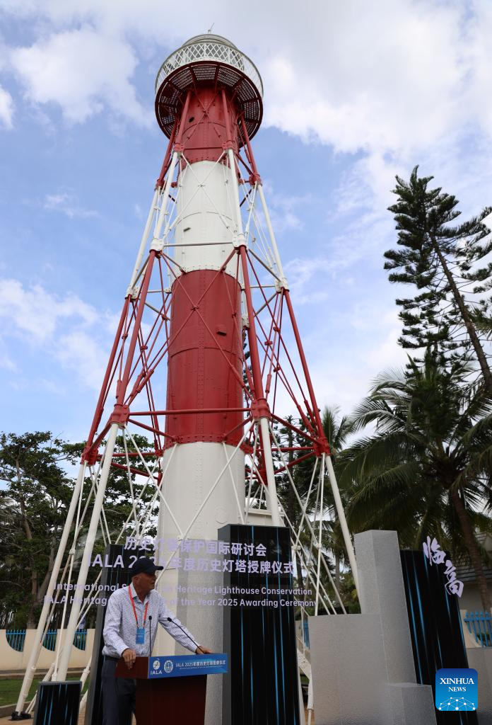 HAIKOU, July 10 (Xinhua) -- Lingao Lighthouse, located in China's southernmost island province of Hainan, was recently awarded the title of "Heritage Lighthouse of the Year 2025" by the International Organization for Marine Aids to Navigation (IALA).