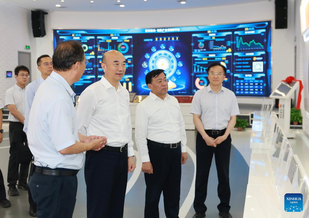 Chinese Vice Premier Liu Guozhong, also a member of the Political Bureau of the Communist Party of China Central Committee, visits a poultry big data center in Beijing, capital of China, July 9, 2025. Liu made a research tour in Beijing on Wednesday. (Xinhua/Ding Lin)