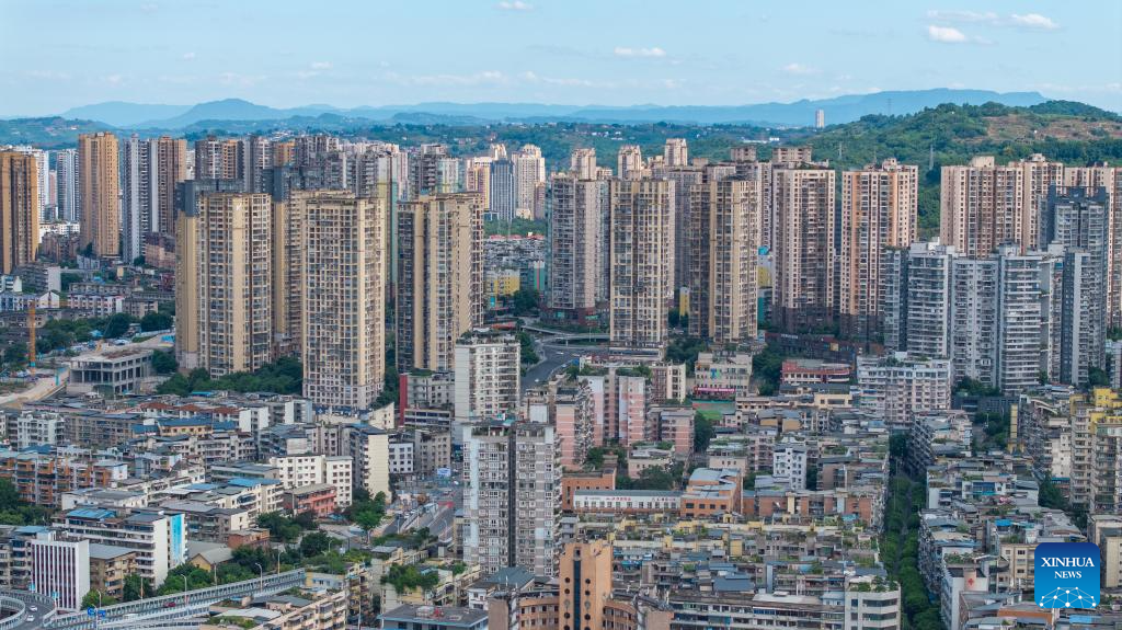 This aerial drone photo taken on July 3, 2025 shows the view of the urban area in Jiangjin District of southwest China's Chongqing Municipality.