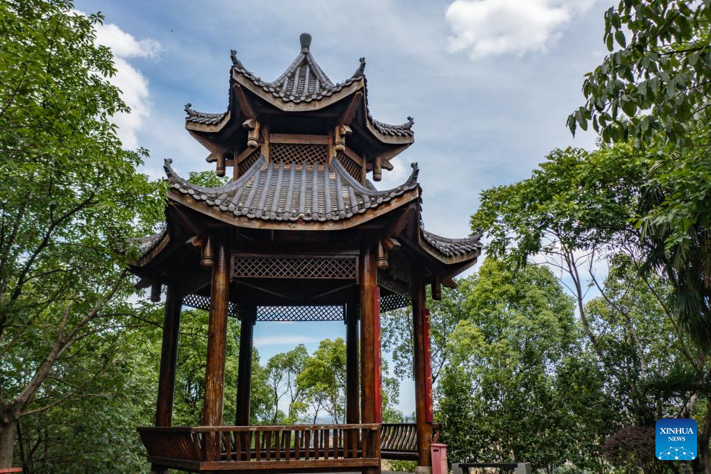 This aerial drone photo taken on July 3, 2025 shows the view of a park in Jiangjin District of southwest China's Chongqing Municipality.