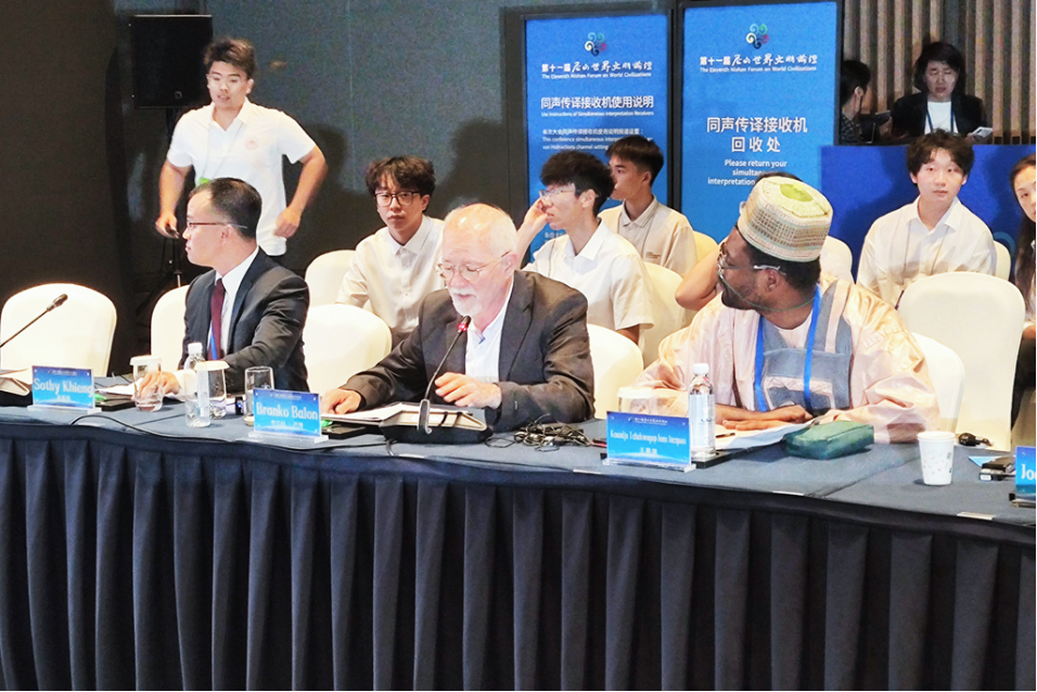 Branko Balon, professor of Computer Science at ALGEBRA University in Croatia, shares his insights at the panel "Artificial Intelligence and the Future of Human Civilizations" during the 11th Nishan Forum on World Civilizations in Qufu, east China’s Shandong Province, July 9, 2025. (Xinhuanet/Liu He)