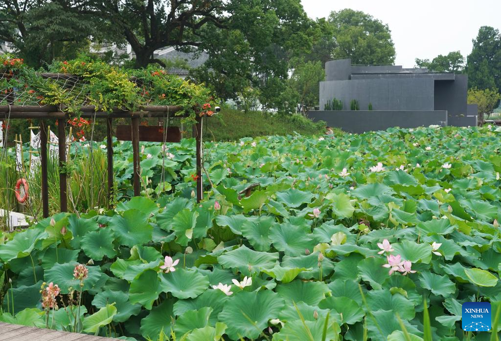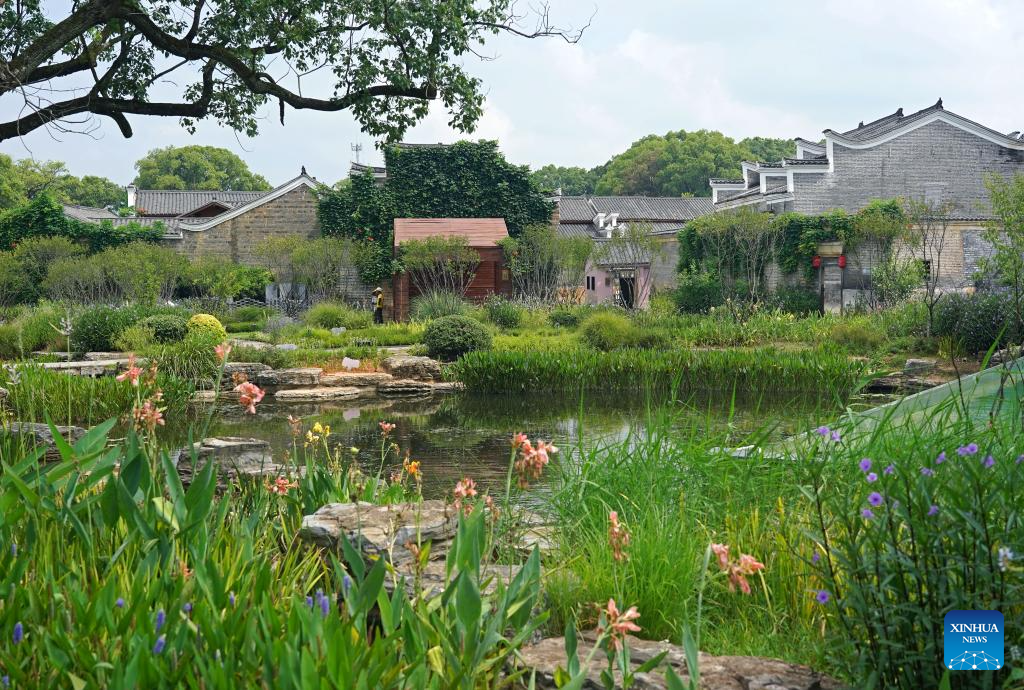 A tourist visits a "museum of seeds" in Diaoyuan Ancient Village of Ji'an, east China's Jiangxi Province, July 9, 2025. Tucked into the undulating hills of Ji'an City in east China's Jiangxi Province, Diaoyuan Village has stood for over 1,100 years -- the layout from above bearing a striking resemblance to a Taoist Tai Chi diagram.