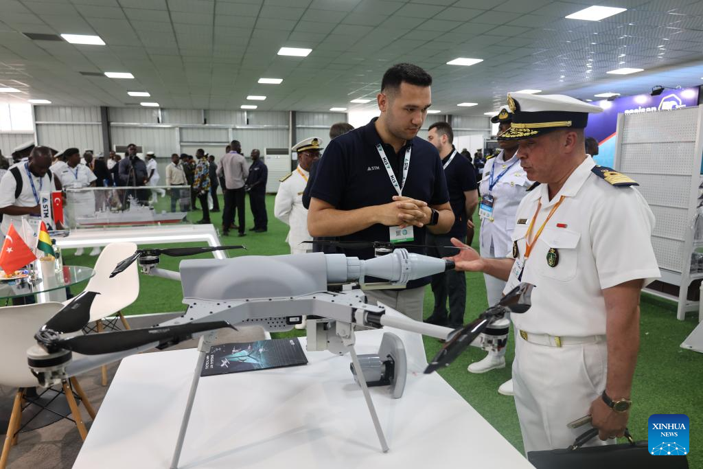 Visitors are seen during the 4th Annual International Maritime Defense Exhibition and Conference (IMDEC) in Accra, Ghana, on July 8, 2025. The IMDEC 2025, hosted under the patronage of the Ghana Navy, plays a critical role in augmenting maritime defense initiatives in the Gulf of Guinea and across the African continent. (Photo by Seth/Xinhua)