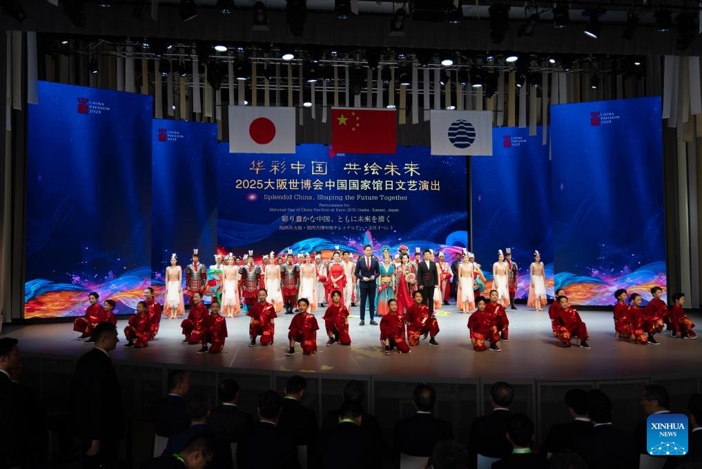 This photo taken on July 11, 2025 shows a performance for China's National Pavilion Day at Expo 2025 Osaka in Osaka, Japan. China's National Pavilion Day event kicked off at Expo 2025 Osaka on Friday. (Xinhua/Jia Haocheng)