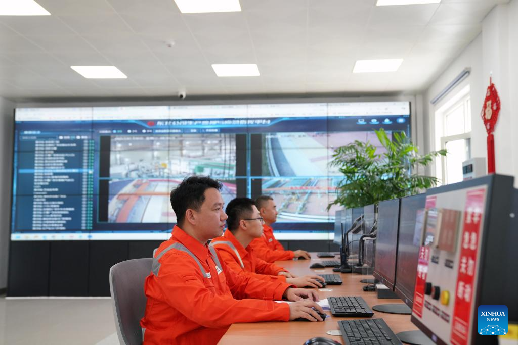 Engineers monitor the operation of facilities at a gas transmission pipeline station in Heihe, northeast China's Heilongjiang Province, July 9, 2025. As of July 10, the cumulative gas transmission volume of the China-Russia east-route natural gas pipeline's China section has surpassed 100 billion cubic meters. The pipeline's China section begins in Heihe, a city in the country's northeast bordering Russia, and transports natural gas from Siberia all the way south to Shanghai, China's economic and financial hub. (Xinhua/Wang Song)