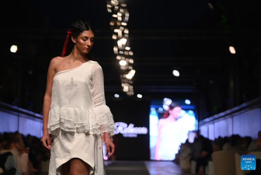 Models present creations at 2025 Malta Fashion Week in Valetta, Malta, July 9, 2025. The event is held here from July 7 to 12. (Photo by Jonathan Borg/Xinhua)