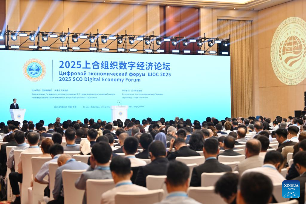 Guests attend the opening ceremony of the 2025 Shanghai Cooperation Organization (SCO) Digital Economy Forum in north China's Tianjin, July 11, 2025. Themed "New Bonds in the Digital Economy, New Horizons for Cooperation," the forum was held here Friday. (Xinhua/Li Ran)