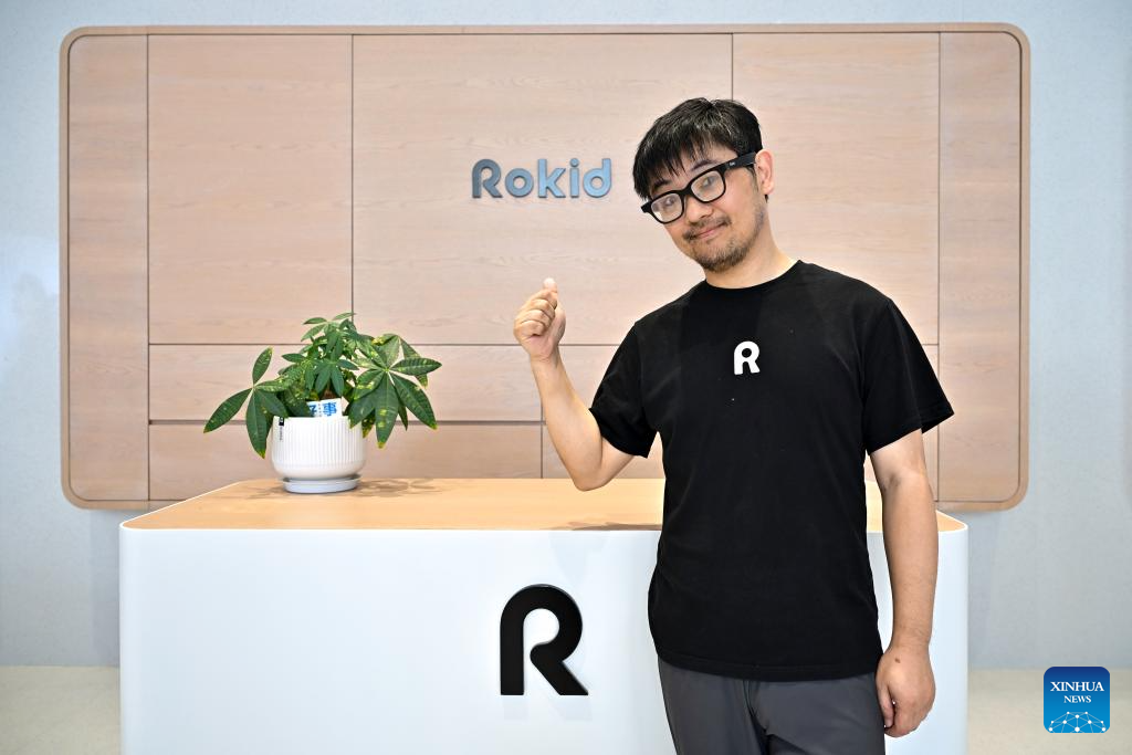 Zhu Mingming, founder and CEO of Rokid, a Hangzhou-based technology company, poses for a photo at Rokid's flagship store in Yujiang District of Yingtan, east China's Jiangxi Province, July 10, 2025. The eyewear industry is a traditional sector in Yujiang District, with sales organizations dating back to the Qing Dynasty (1644-1911). Today, Yujiang ranks among the top eyewear industry bases in China, attracting numerous well-known enterprises. From handcrafted eyewear over 200 years ago to the smart glasses today, Yujiang has written a centuries-long legend in the field of optics. (Xinhua/Liu Jinhai)