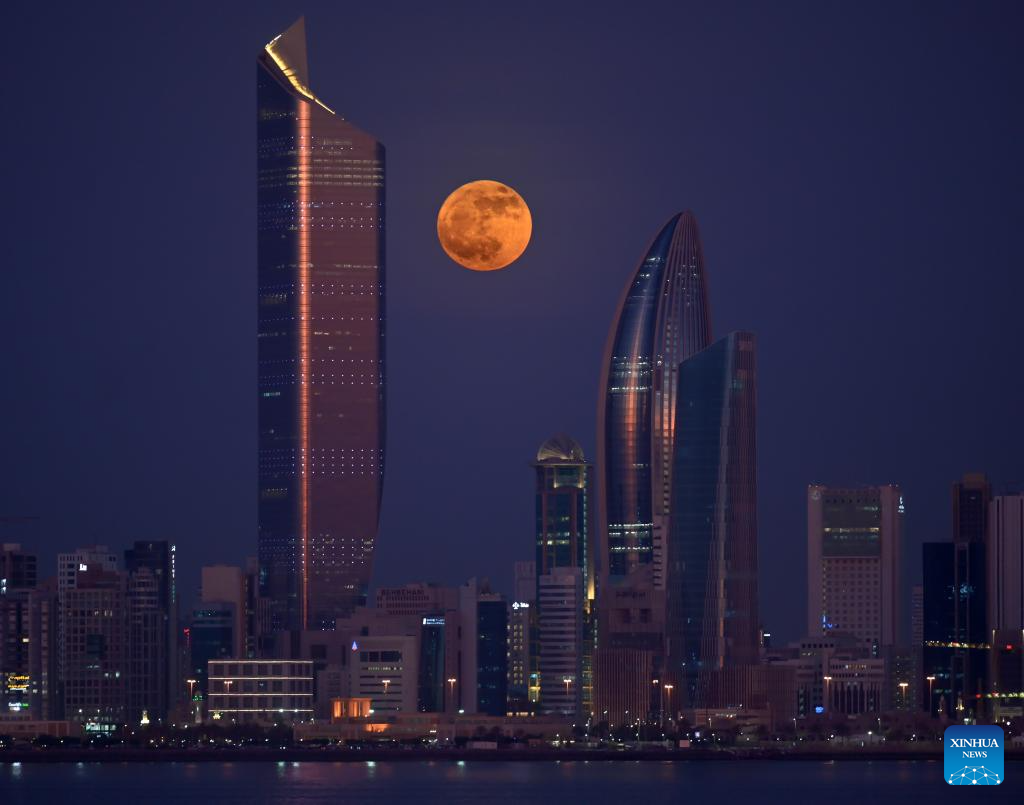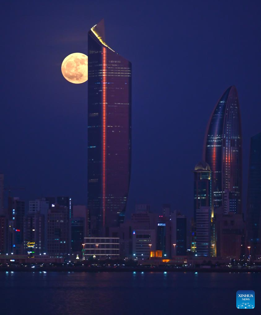 A full moon is seen in the sky over Kuwait City, Kuwait, on 10 July, 2025. (Photo by Asad/Xinhua)