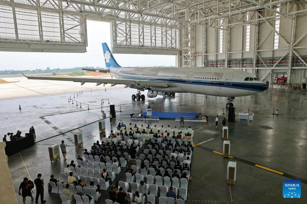 Airbus Lifecycle Services Centre (ALSC) welcomes its first aircraft for dismantling in Chengdu, southwest China's Sichuan Province in August, 2024. TO GO WITH "Economic Watch: Airbus marks 40 years in China with commitment to deepened industrial integration" (Airbus/Handout via Xinhua)