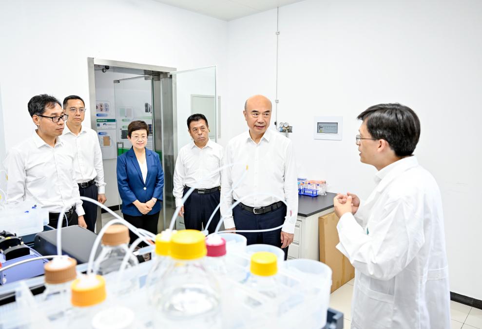 Liu, also a member of the Political Bureau of the Communist Party of China Central Committee, visited Peking University's School of Pharmaceutical Sciences to learn about medical research and development, as well as the construction and operations of key laboratories, and listened to opinions from various relevant parties at a symposium.