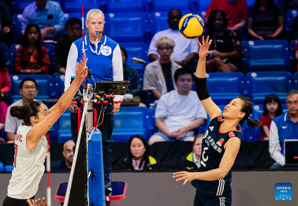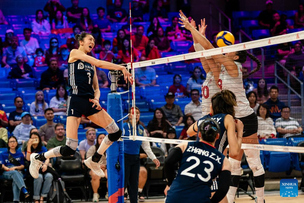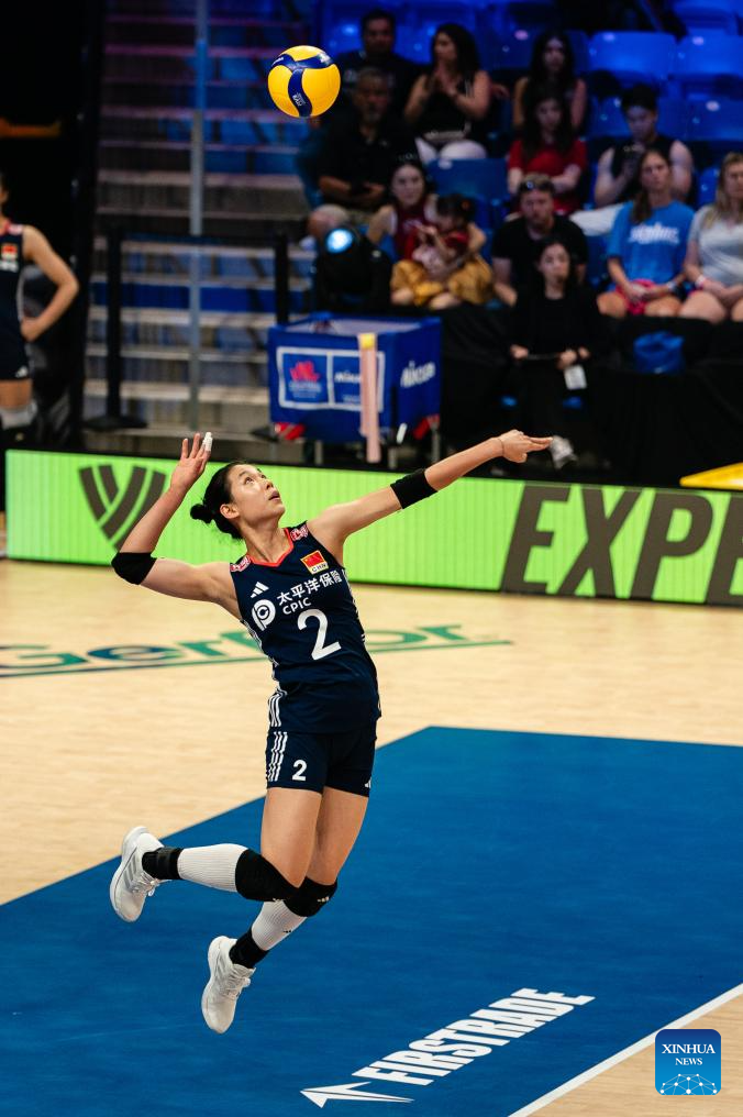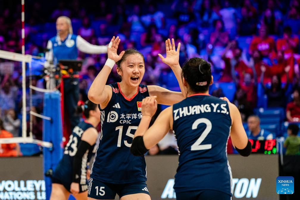 ARLINGTON, United States, July 11 (Xinhua) -- The final week of the Women's Volleyball Nations League (VNL) group stage continued Friday in Arlington, Texas, where China defeated Canada 3-1 (25-22, 25-15, 22-25, 25-23) in a hard-fought encounter.