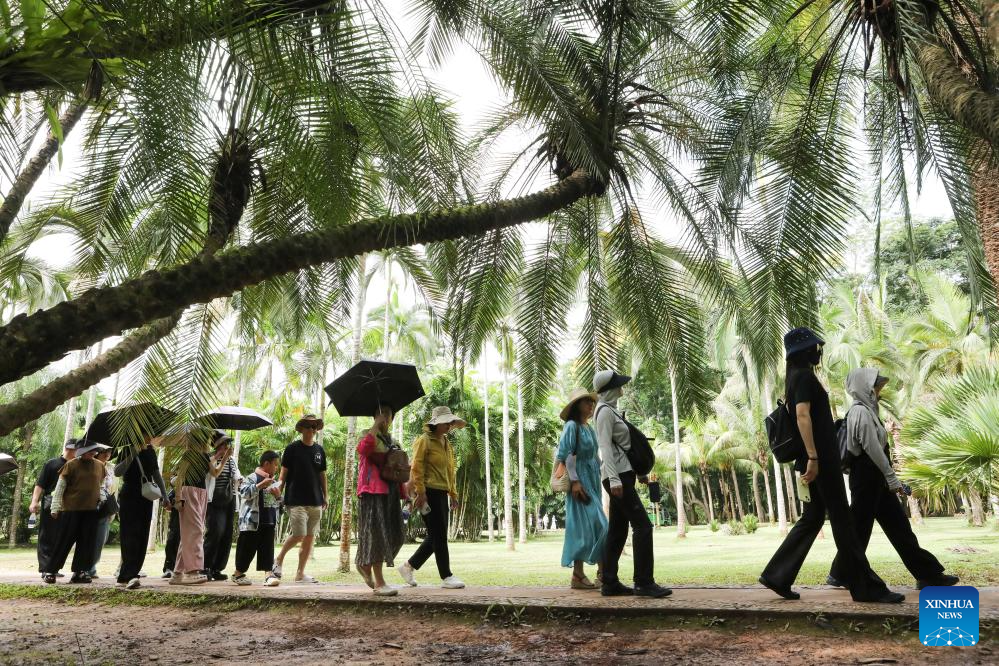 Tourists visit the Xishuangbanna Tropical Botanical Garden of the Chinese Academy of Sciences (CAS) in Mengla County, Xishuangbanna Dai Autonomous Prefecture, southwest China's Yunnan Province, July 12, 2025. Tourist destinations in Yunnan entered their peak tourism season as summer vacation began. (Photo by Li Yunsheng/Xinhua)