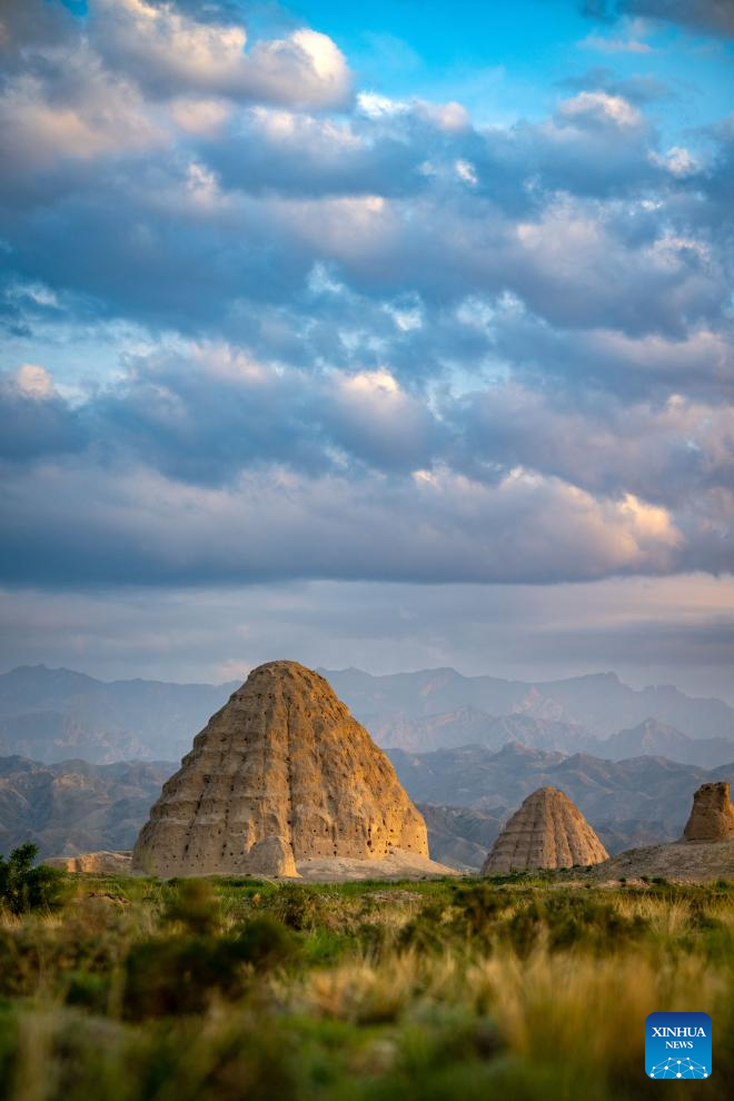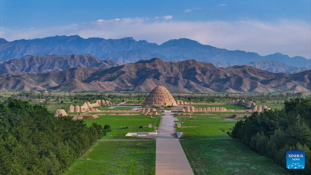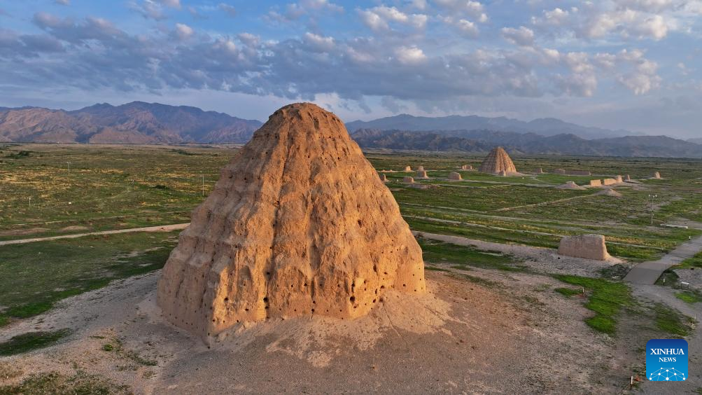 This photo taken on July 10, 2025 shows a Xixia imperial tomb in Yinchuan, northwest China's Ningxia Hui Autonomous Region. China's Xixia Imperial Tombs were officially added to the UNESCO World Heritage List on Friday during the 47th session of the World Heritage Committee held in Paris, France. The inscription brings the total number of World Heritage sites in China to 60. (Xinhua/Yang Zhisen)