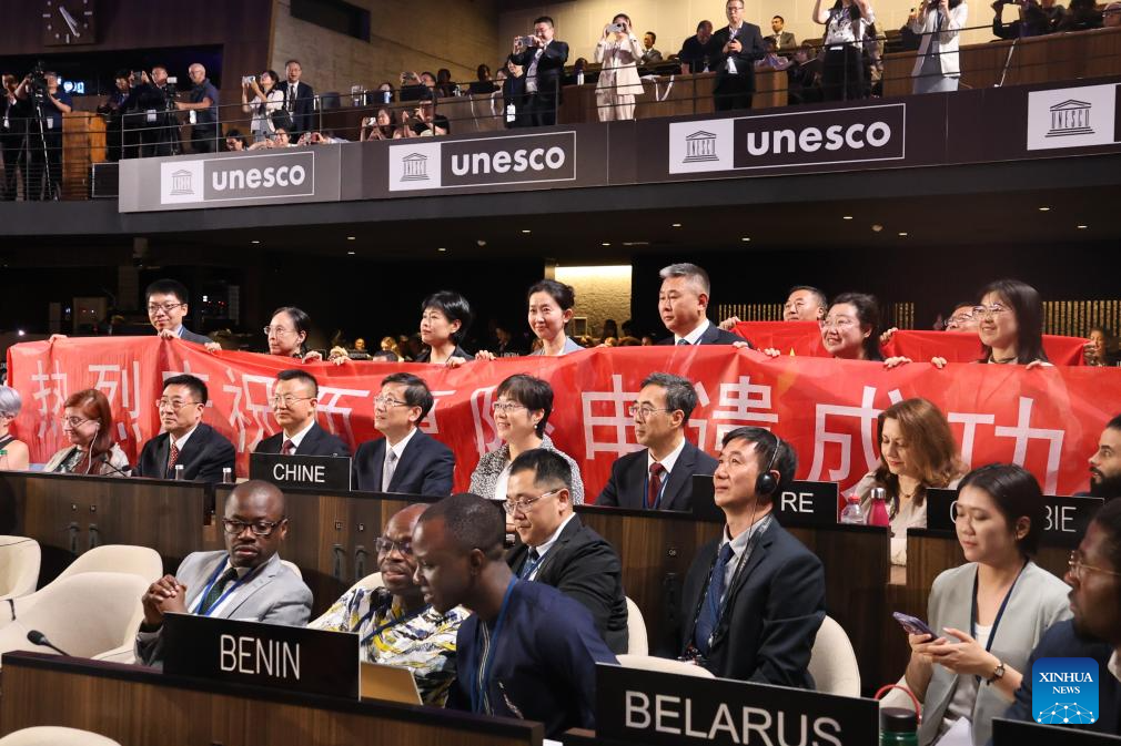 China's Xixia Imperial Tombs was presented during the 47th session of the World Heritage Committee in Paris, France, July 11, 2025. China's Xixia Imperial Tombs were officially added to the UNESCO World Heritage List on Friday during the 47th session of the World Heritage Committee held in Paris, France. The inscription brings the total number of World Heritage sites in China to 60. (Xinhua/Wang Songyu)