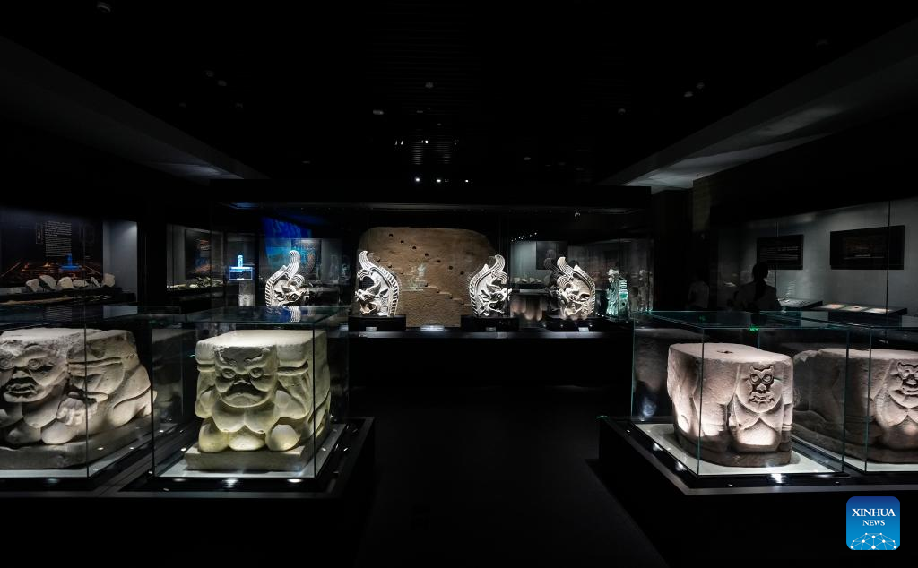 This photo taken on July 9, 2025 shows cultural relics discovered from Xixia imperial tombs at the Xixia Imperial Tombs Museum in Yinchuan, northwest China's Ningxia Hui Autonomous Region. China's Xixia Imperial Tombs were officially added to the UNESCO World Heritage List on Friday during the 47th session of the World Heritage Committee held in Paris, France. The inscription brings the total number of World Heritage sites in China to 60. (Xinhua/Yang Zhisen)