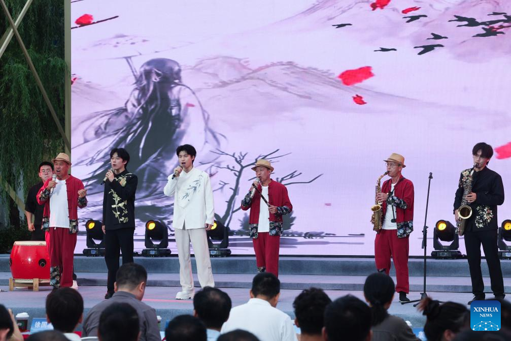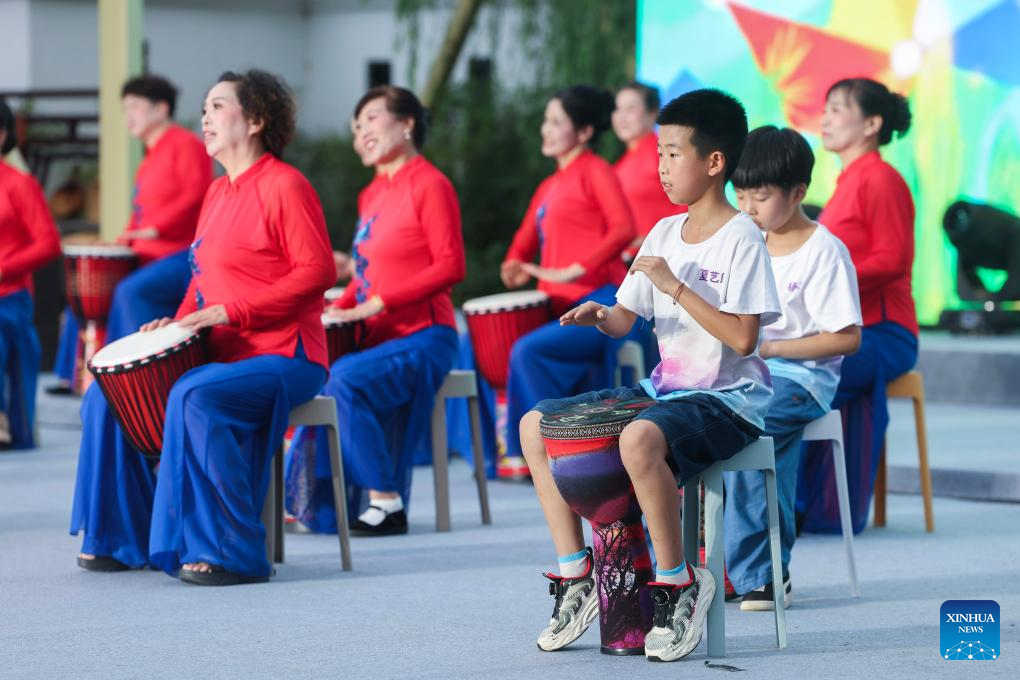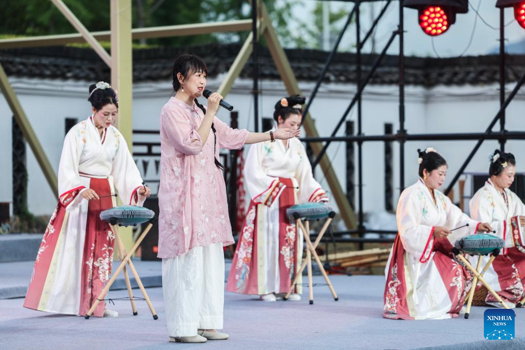 Villagers from a local musical school perform during the village summer musical season in Sandu Township, Jiande City, east China's Zhejiang Province, July 11, 2025. (Xinhua/Xu Yu)