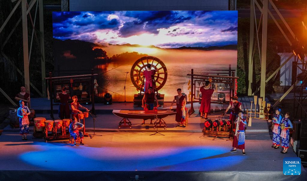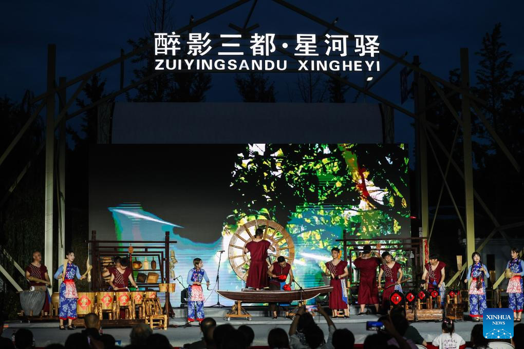 Actors perform during the village summer musical season in Sandu Township, Jiande City, east China's Zhejiang Province, July 11, 2025. (Xinhua/Xu Yu)