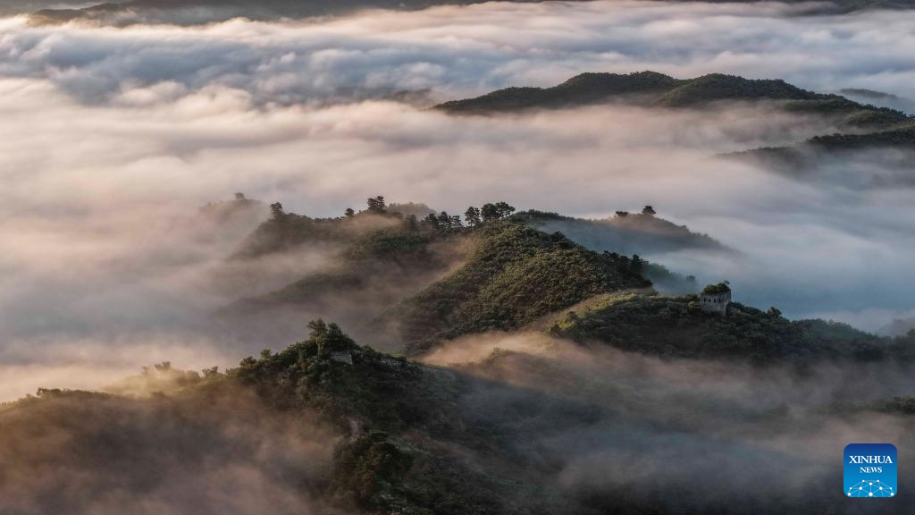 An aerial drone photo taken on early July 13, 2025 shows a view of the Hongshankou Great Wall in Zunhua City, north China's Hebei Province. (Photo by Liu Mancang/Xinhua)