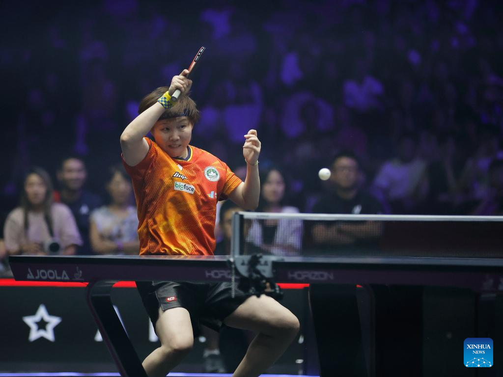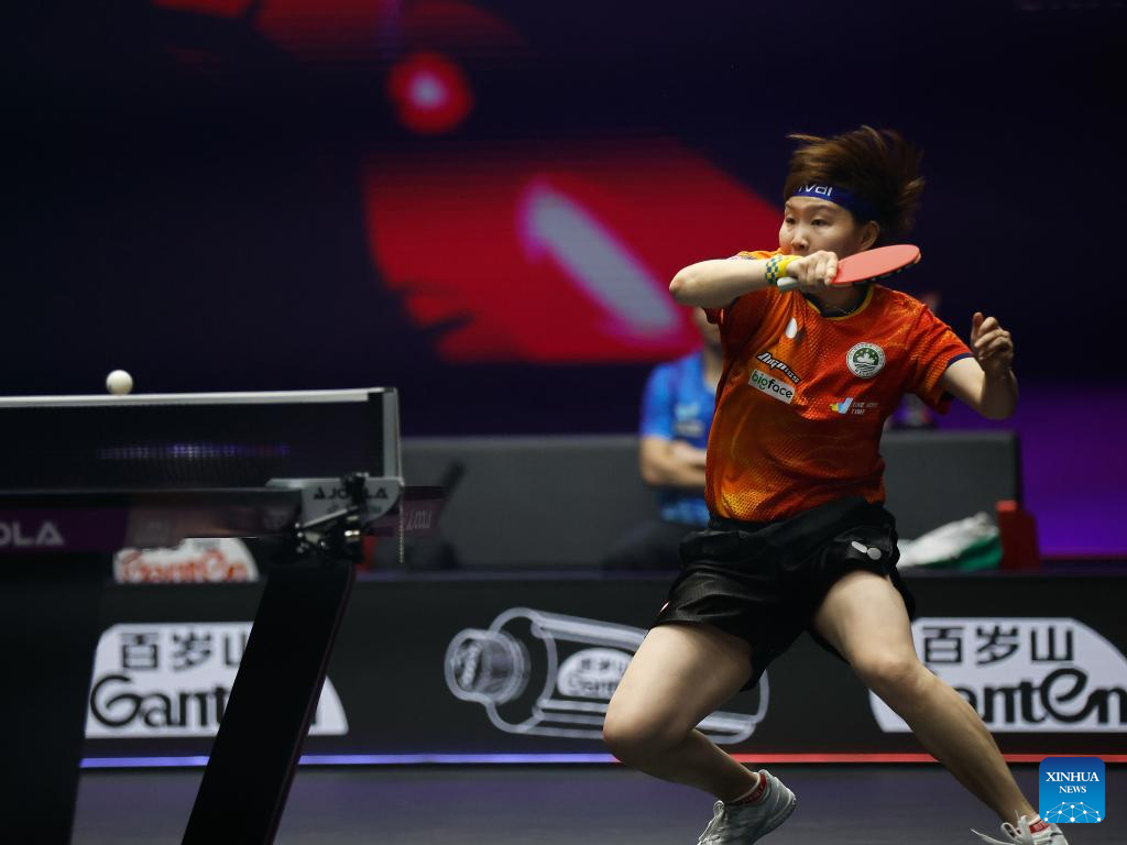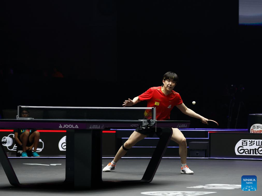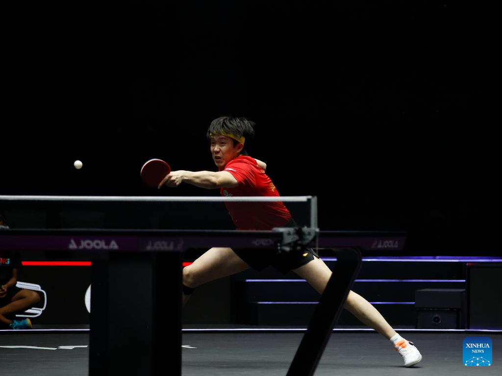 WASHINGTON, July 13 (Xinhua) -- China's Wang Chuqin swept Japan's Tomokazu Harimoto in the men's singles final, while university teacher and former World Cup winner Zhu Yuling returned to the top by defeating Chen Yi in a clash of female giant-killers at the WTT US Smash in Las Vegas on Sunday.