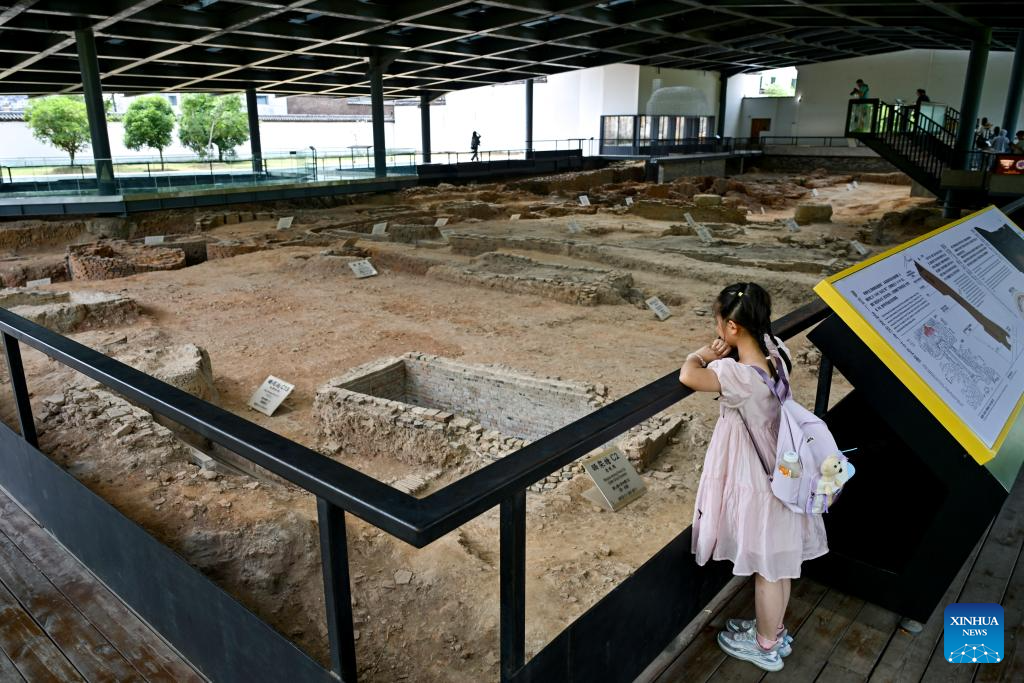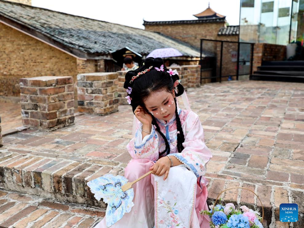 A tourist visits Taoyangli historical and cultural block in Jingdezhen City, east China's Jiangxi Province, July 13, 2025. Located in the heart of Jingdezhen, Taoyangli has successfully transformed from an old district into a thriving hub for cultural innovation and tourism in recent years. Today, it has become a must-visit destination for tourists. (Xinhua/Liu Jinhai)