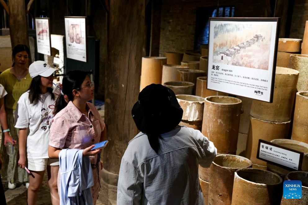 Tourists visit Taoyangli historical and cultural block in Jingdezhen City, east China's Jiangxi Province, July 13, 2025. Located in the heart of Jingdezhen, Taoyangli has successfully transformed from an old district into a thriving hub for cultural innovation and tourism in recent years. Today, it has become a must-visit destination for tourists. (Xinhua/Liu Jinhai)