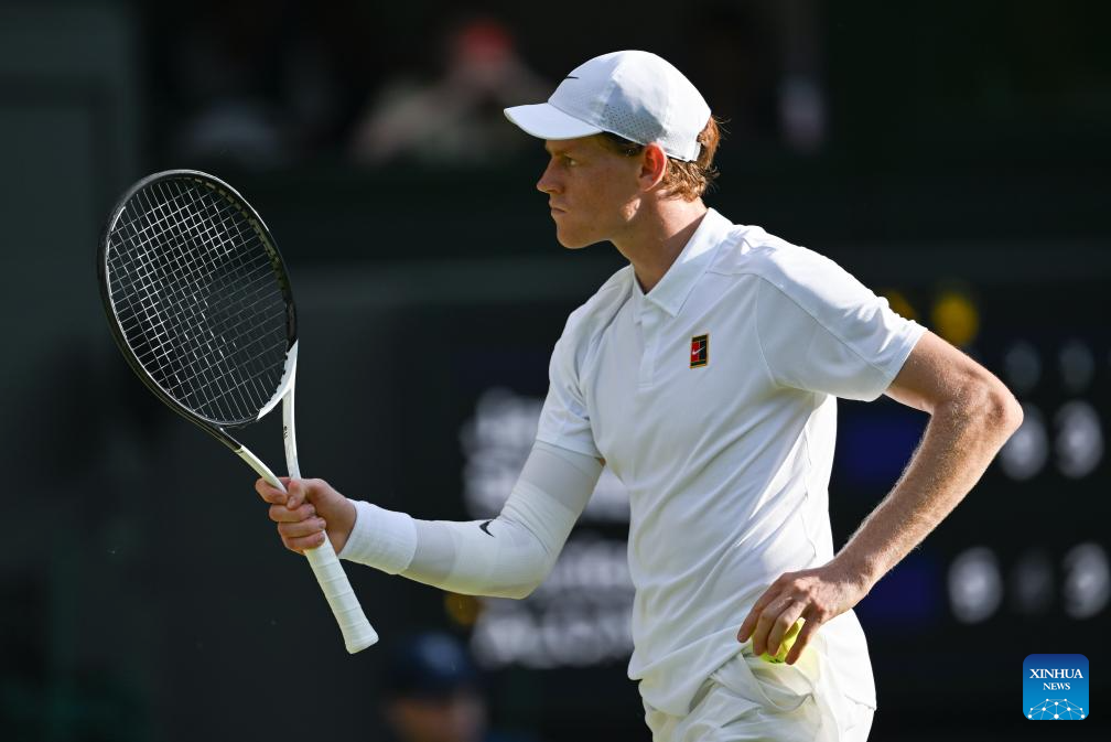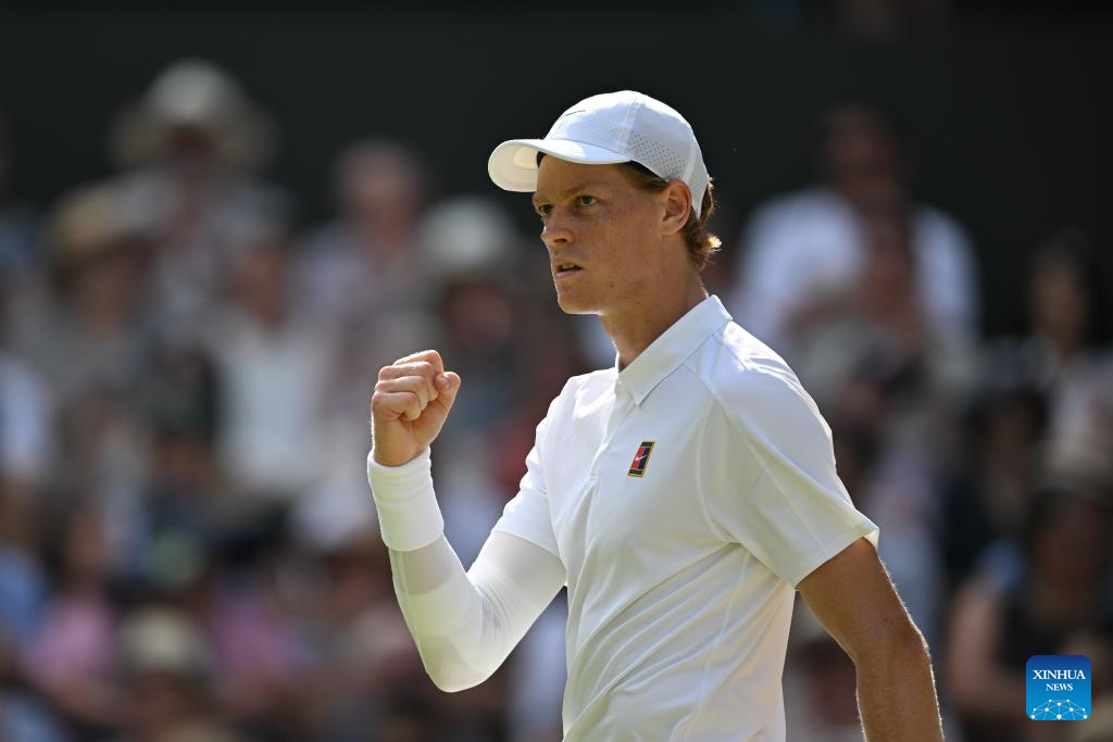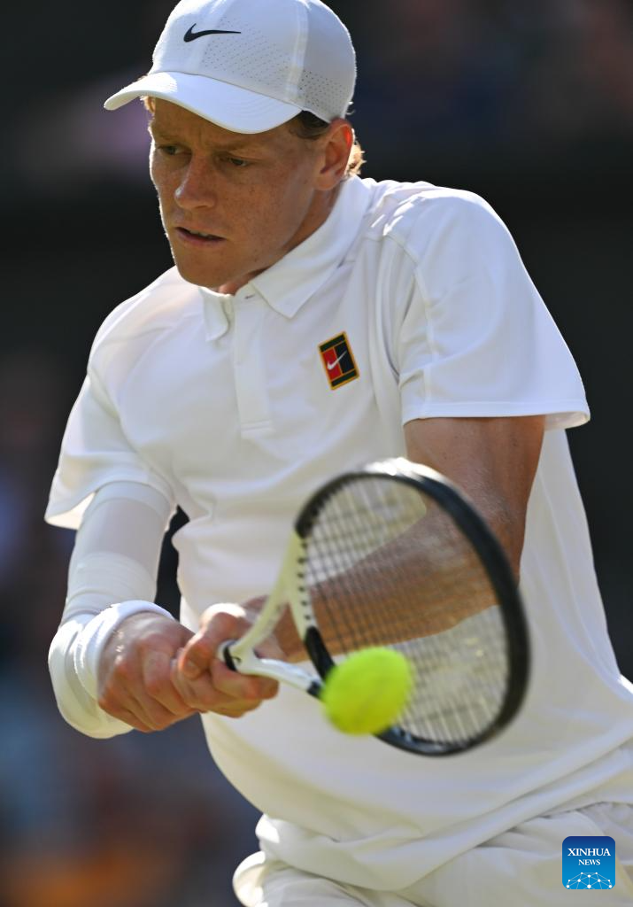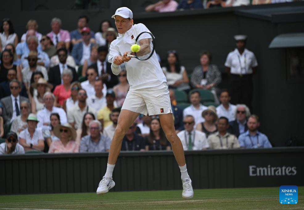 LONDON, July 13 (Xinhua) -- World No. 1 Jannik Sinner held off defending champion Carlos Alcaraz 4-6, 6-4, 6-4, 6-4 to win his first Wimbledon title on Sunday.